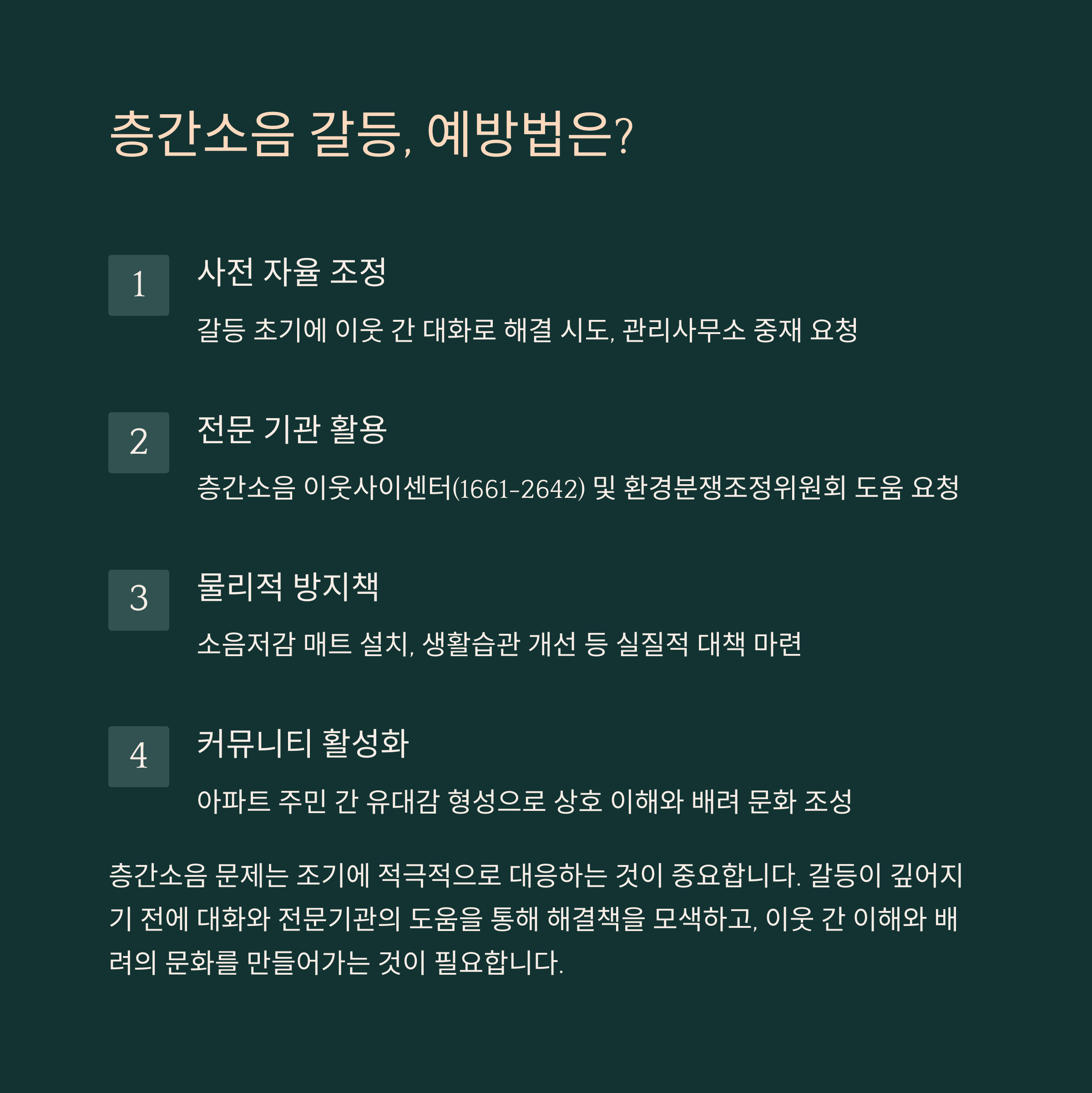 이번 사건은 단순한 이웃 간 다툼이 극단적 범죄로 번질 수 있음을 보여준다. 층간소음 문제는 최근 스토킹처벌법 등으로도 처벌이 가능해졌으나, 근본적 해결책은 이웃 간 소통과 중재, 그리고 관리주체의 적극적 개입이 병행되어야 한다.