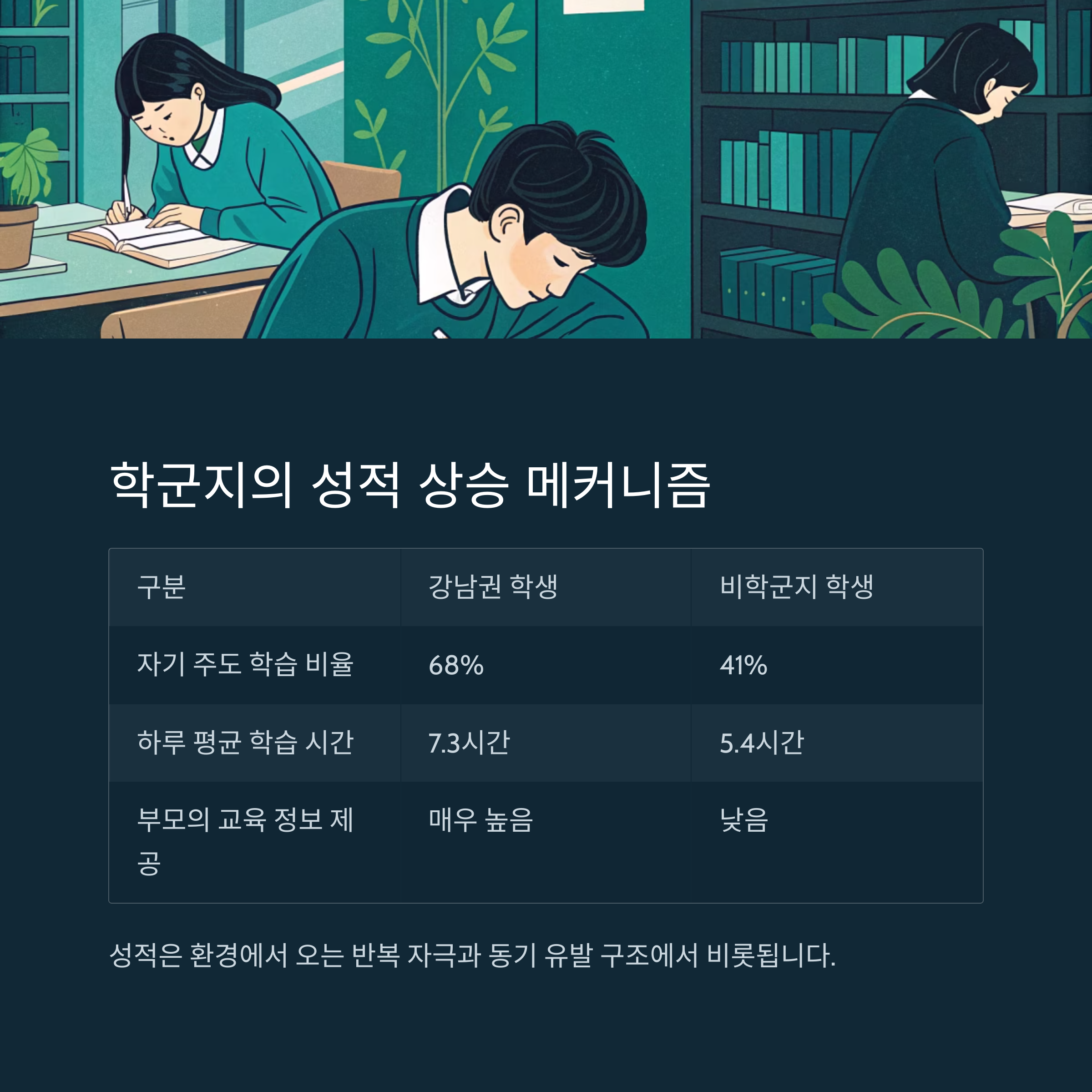 결국 성적은 환경에서 오는 반복 자극과 동기 유발 구조에서 비롯됩니다.