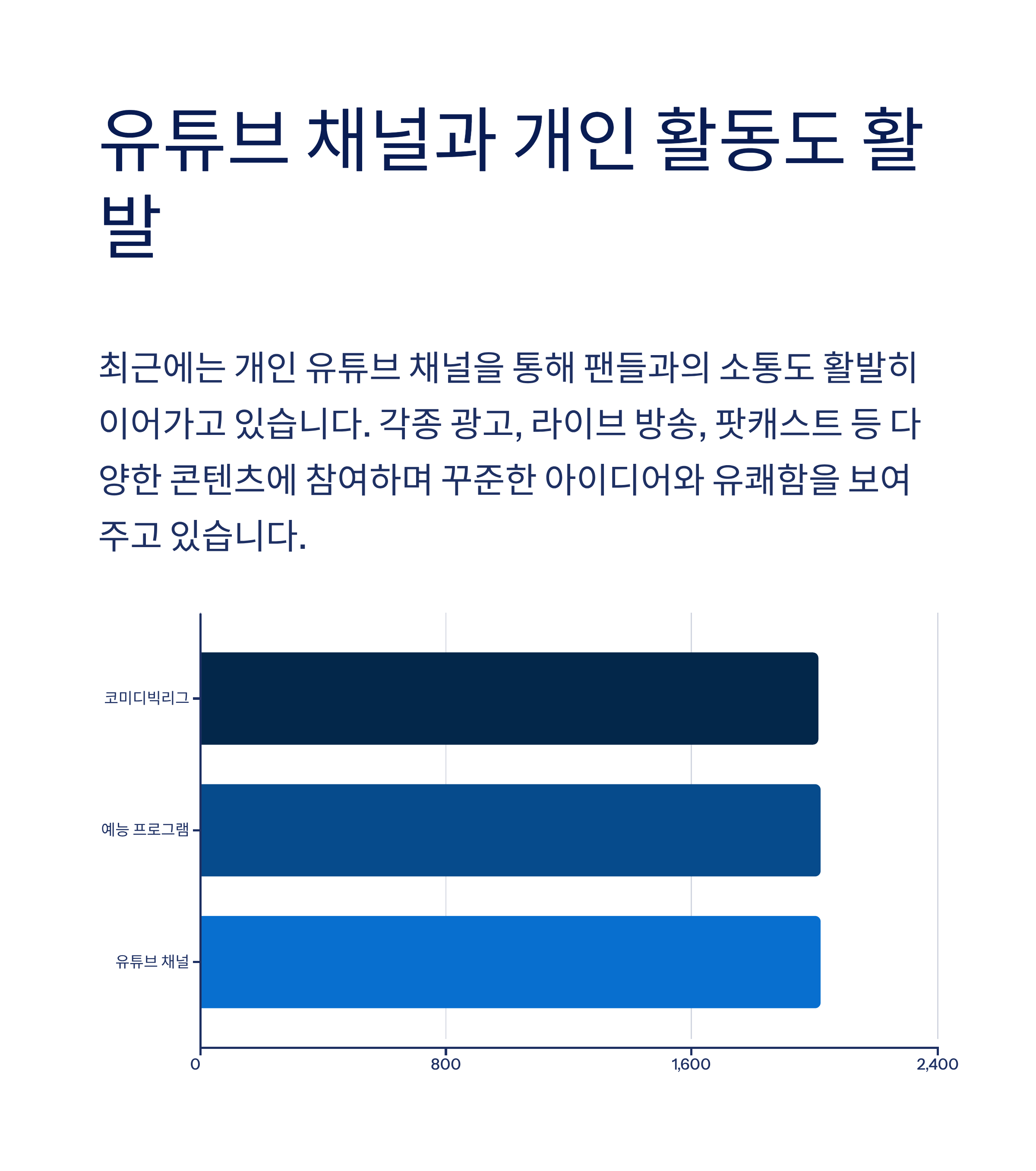유튜브 채널과 개인 활동도 활발