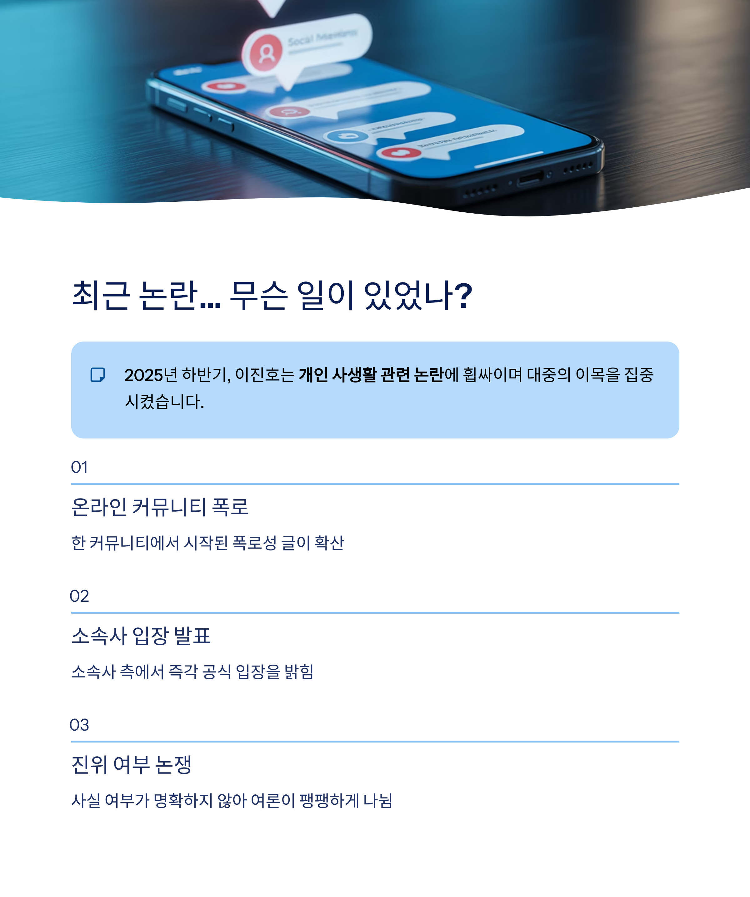 2025년 하반기, 이진호는 개인 사생활 관련 논란에 휩싸이며 대중의 이목을 집중시켰습니다.