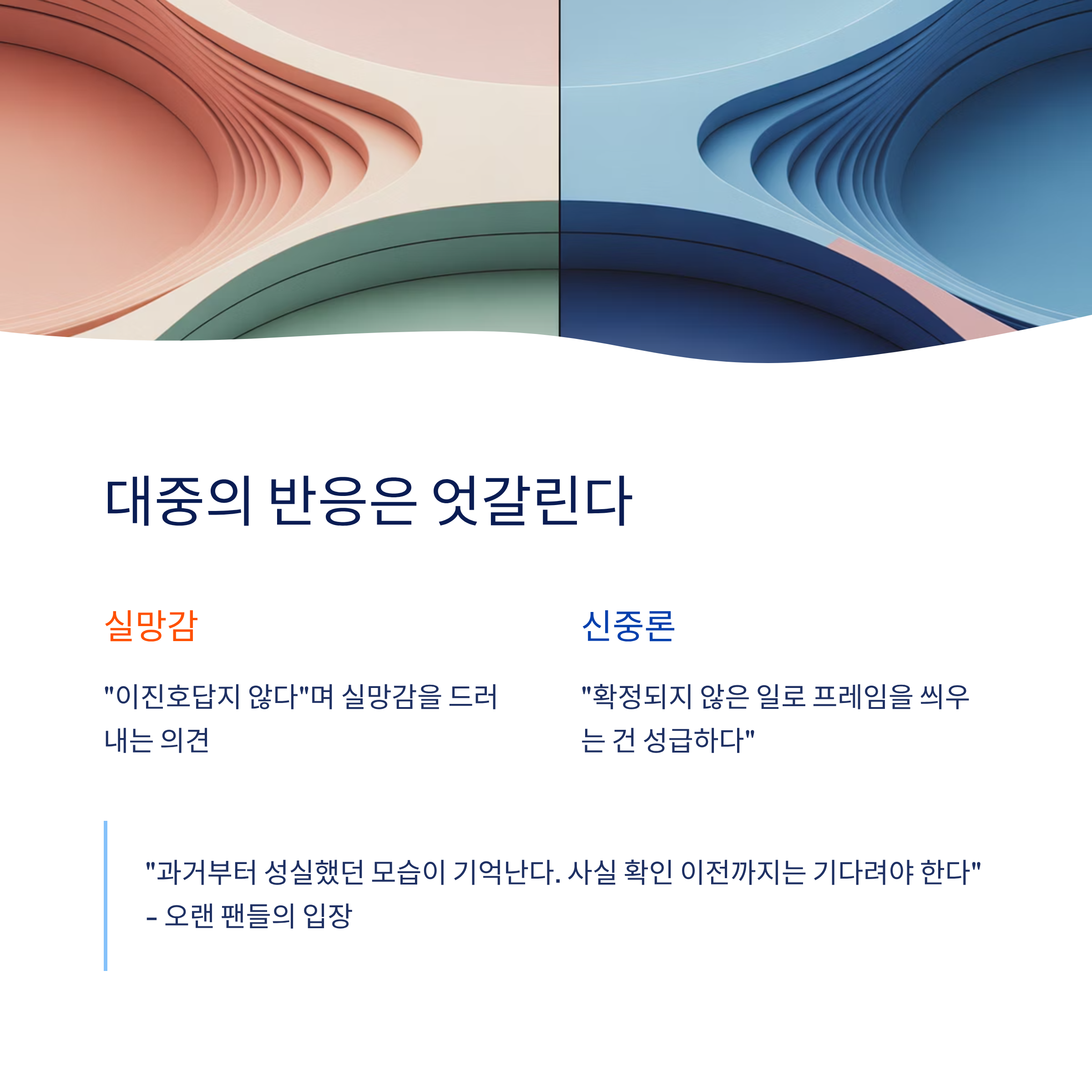 "확정되지 않은 일로 프레임을 씌우는 건 성급하다"는 신중론도 존재합니다.