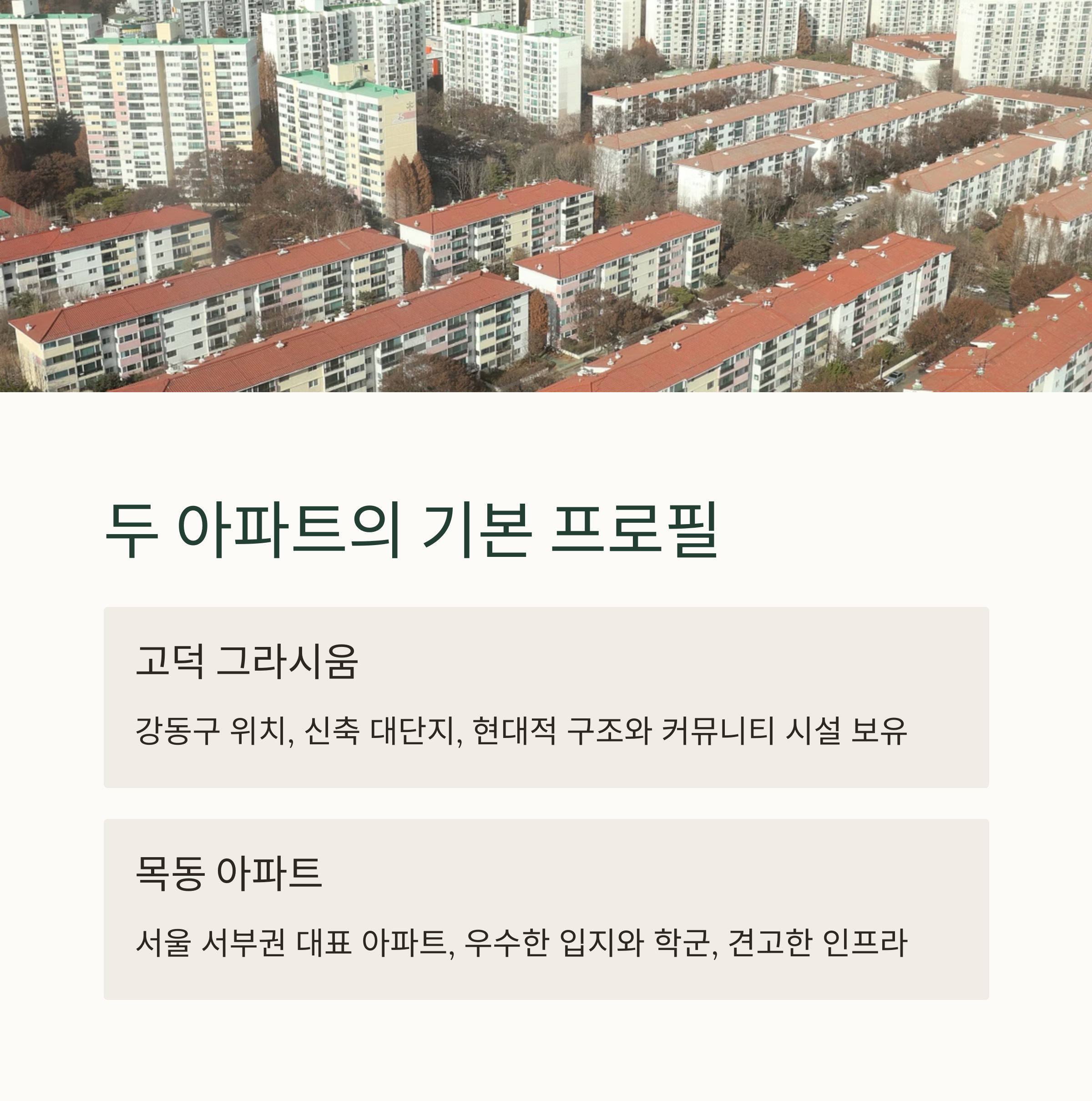 반면, 목동 아파트는 오랜 기간 서울 서부권의 대표 아파트로 자리잡았으며