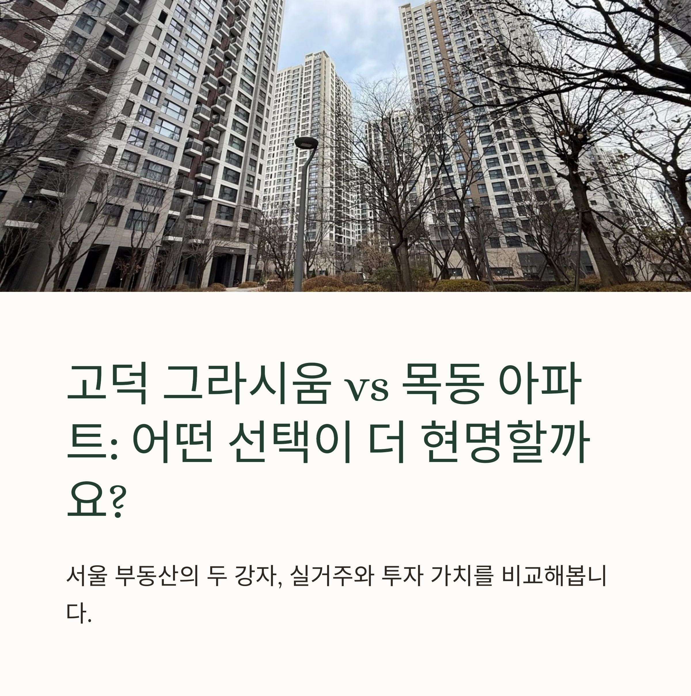 투자와 학군 중심이라면 목동이 더 현명한 선택일 수 있습니다.
