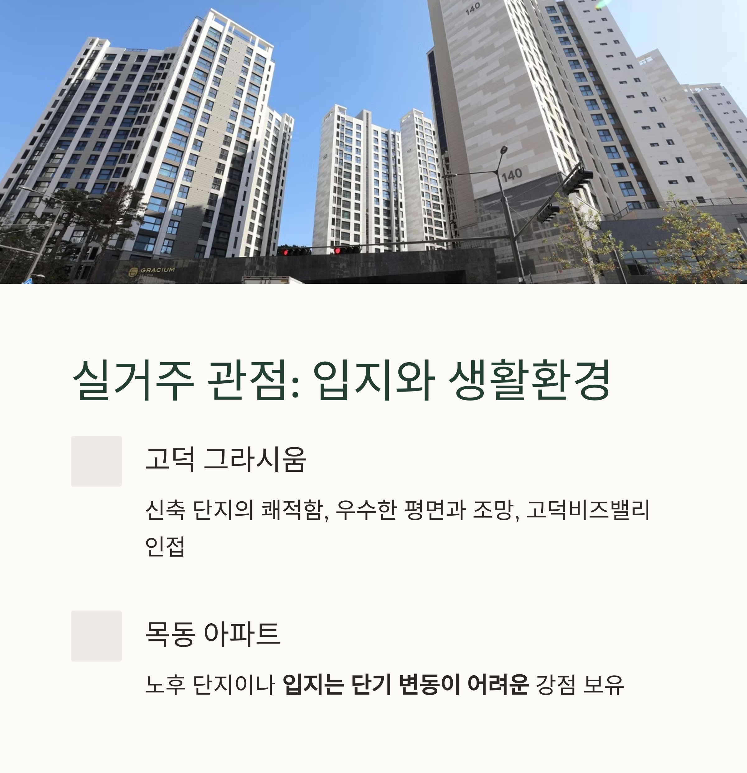 비교 항목 고덕 그라시움 목동 아파트