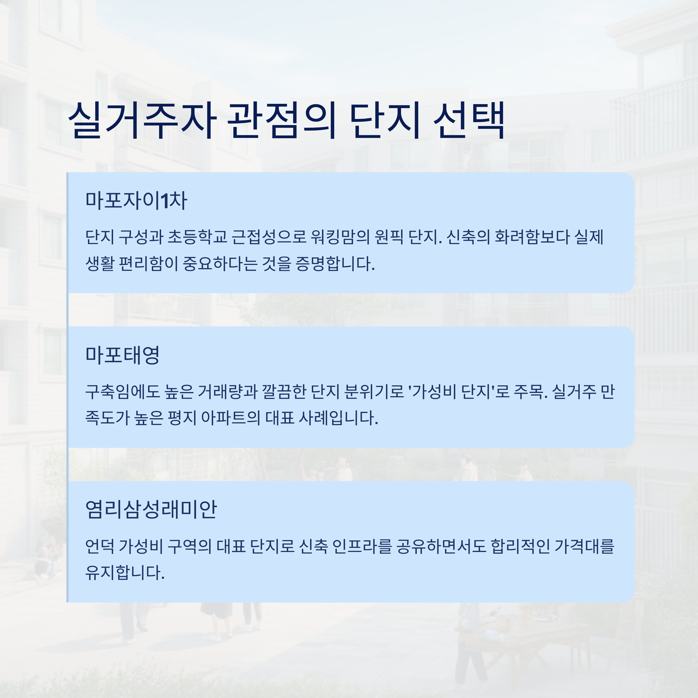 마포자이1차부터 마포태영까지, 실거주자의 시선으로 본 선택의 이유