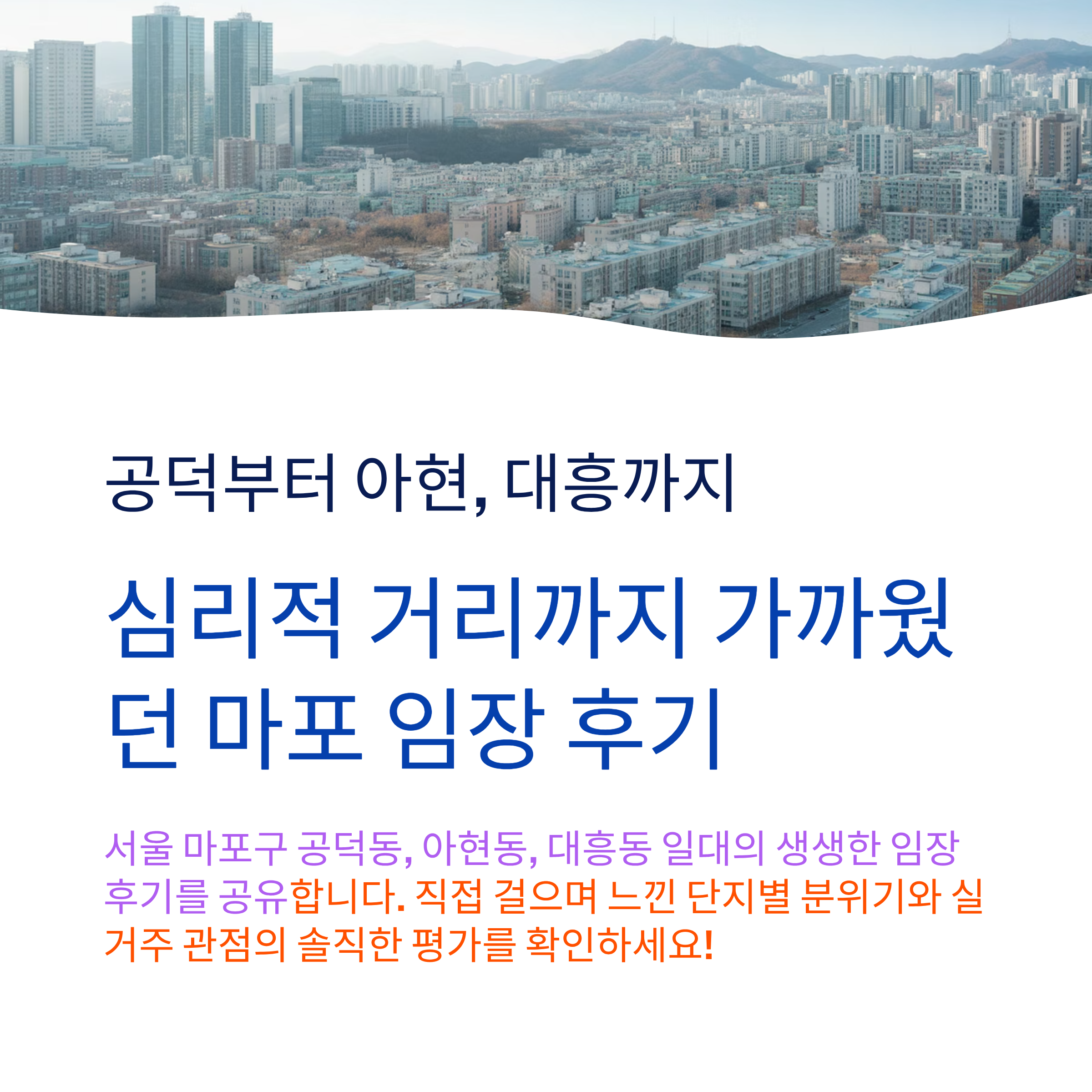 서울 마포구 공덕동, 아현동, 대흥동 일대는 직장 접근성, 학군, 평지/언덕 조건 등 다양한 요소로 인해 실거주 수요가 매우 활발한 지역입니다. 특히 최근 옥수와 아현을 두고 고민하시는 분들이 많아지는 가운데, 정주 여건 면에서 한 발 앞선다는 평을 받는 아현·공덕 일대를 중심으로 임장을 다녀왔습니다. 직접 걸으며 보고 듣고 느낀 다양한 단지들의 분위기, 위치적 장단점, 커뮤니티 분위기를 중심으로 구성된 이번 후기가 아파트 선택에 조금이나마 도움이 되시길 바랍니다.
