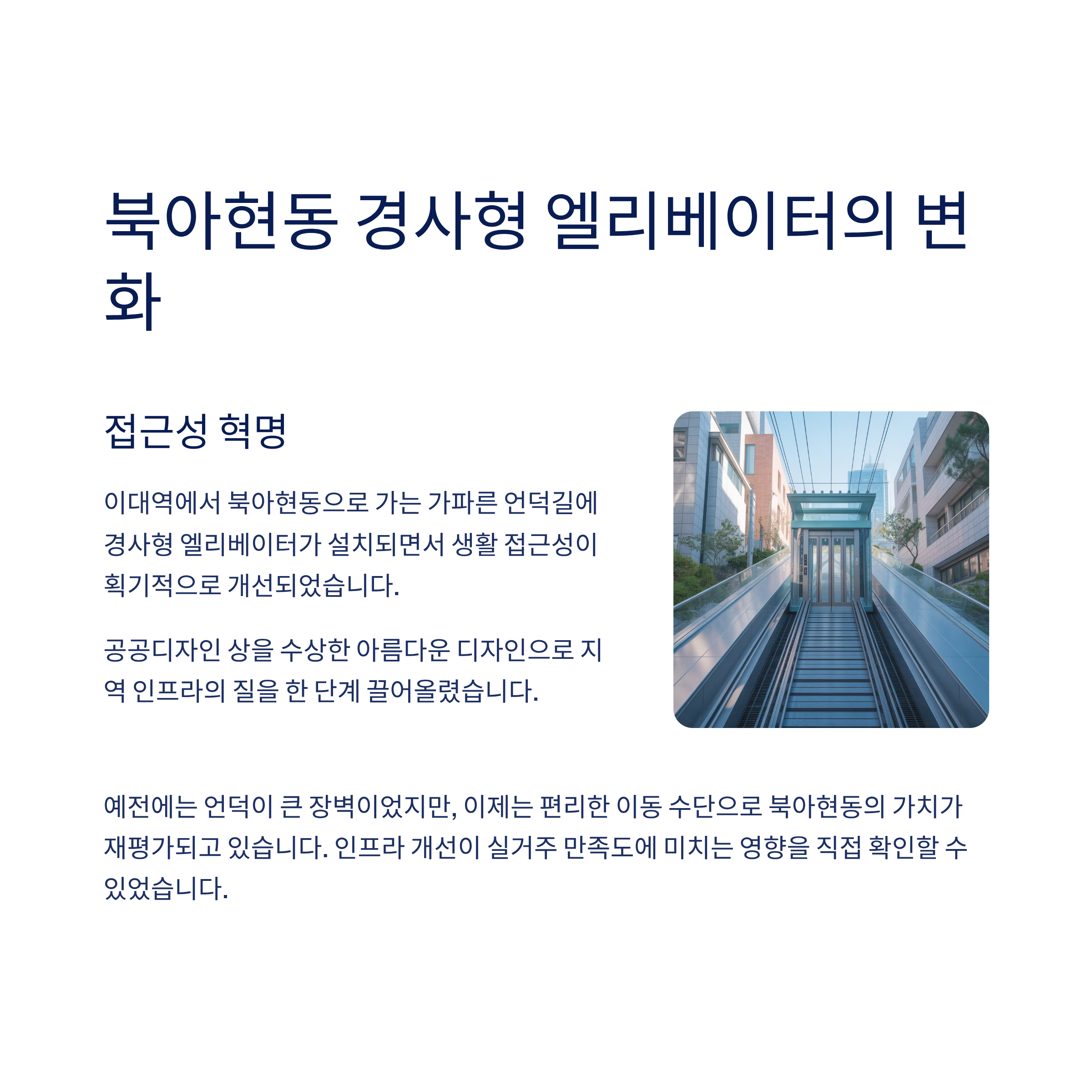 북아현동 경사형 엘리베이터, 생활 접근성의 판을 바꾸다