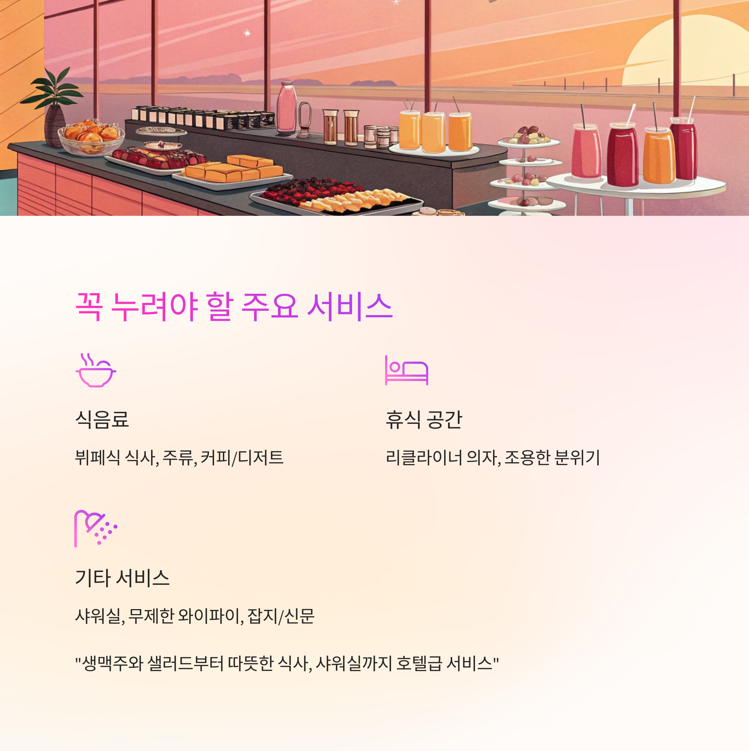 라운지에서 꼭 누려야 할 주요 서비스