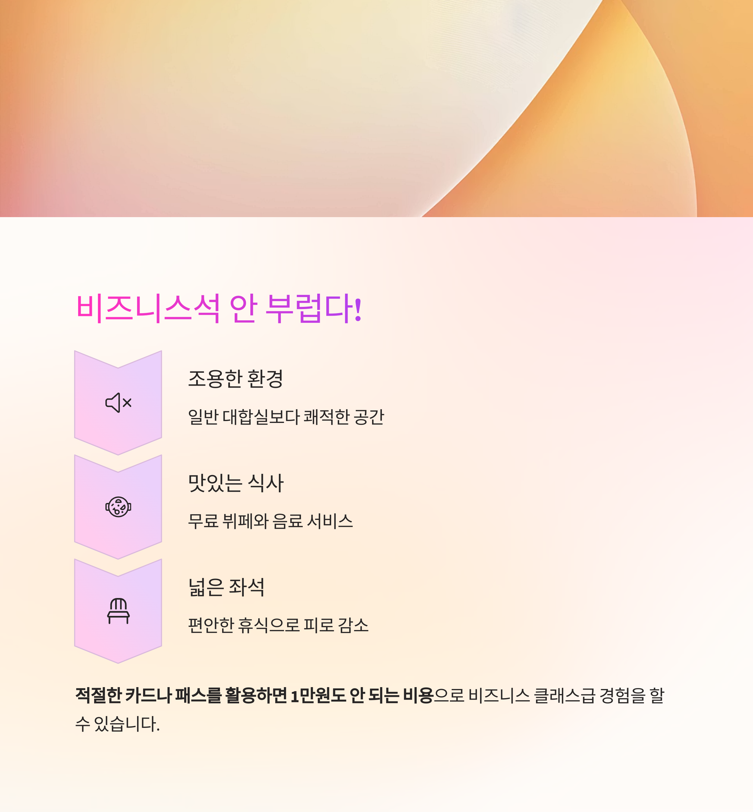 비즈니스 클래스급 경험을 할 수 있다는 점, 꼭 기억하세요.