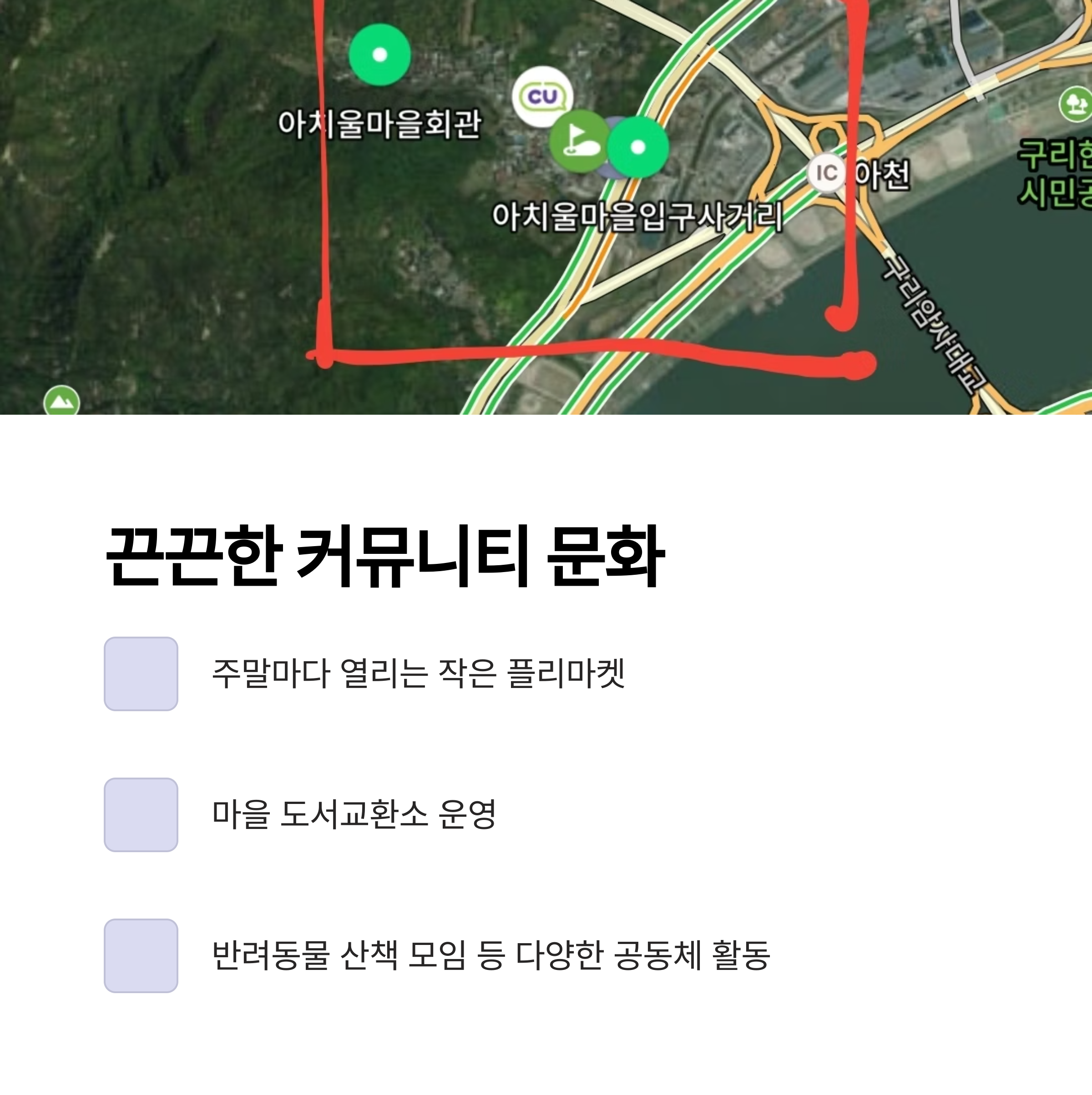 작은 플리마켓, 마을 도서교환소, 반려동물 산책 모임 등