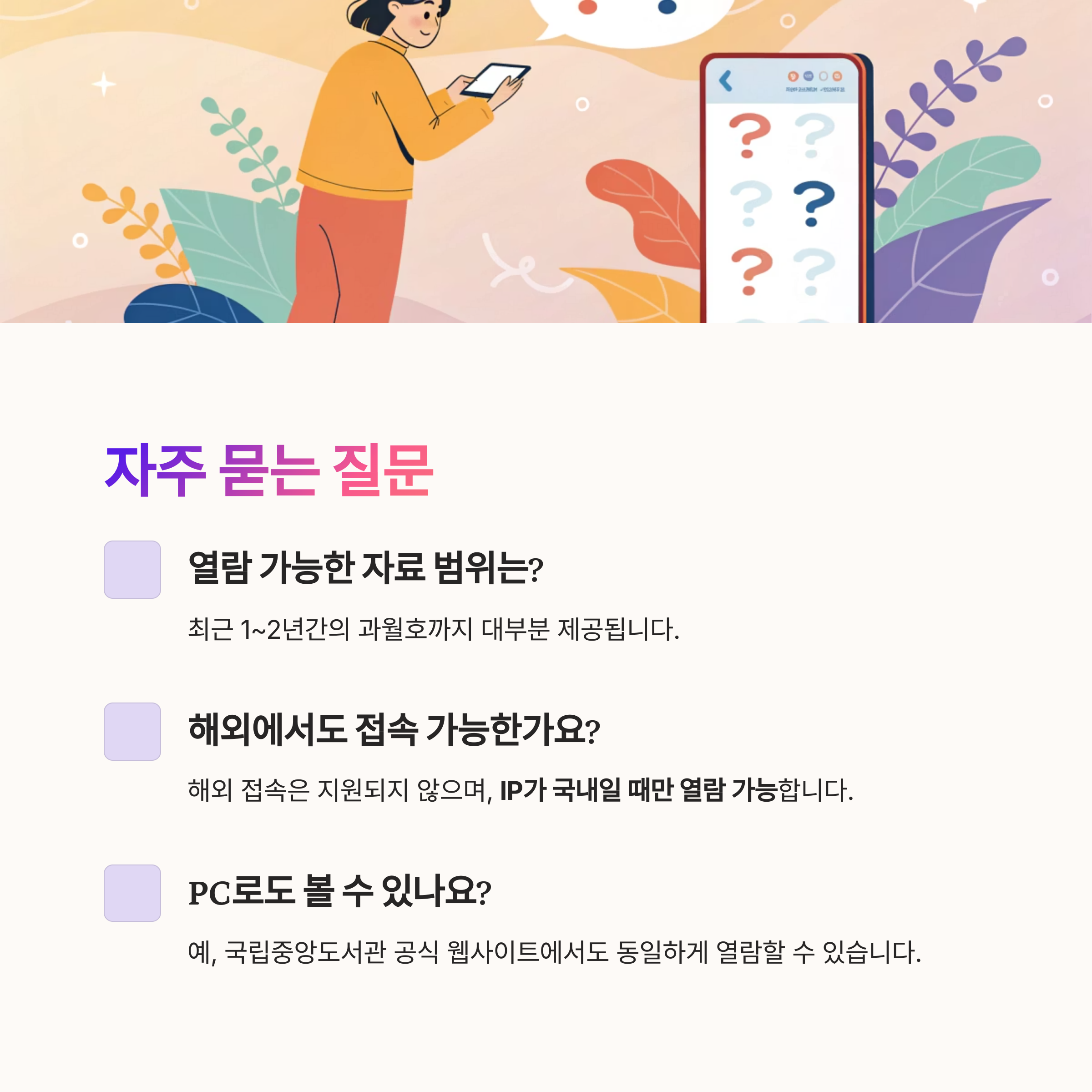 '도서관 방문 없이도 모바일 앱에서 열람이 가능하다는 점'이 핵심 포인트입니다.