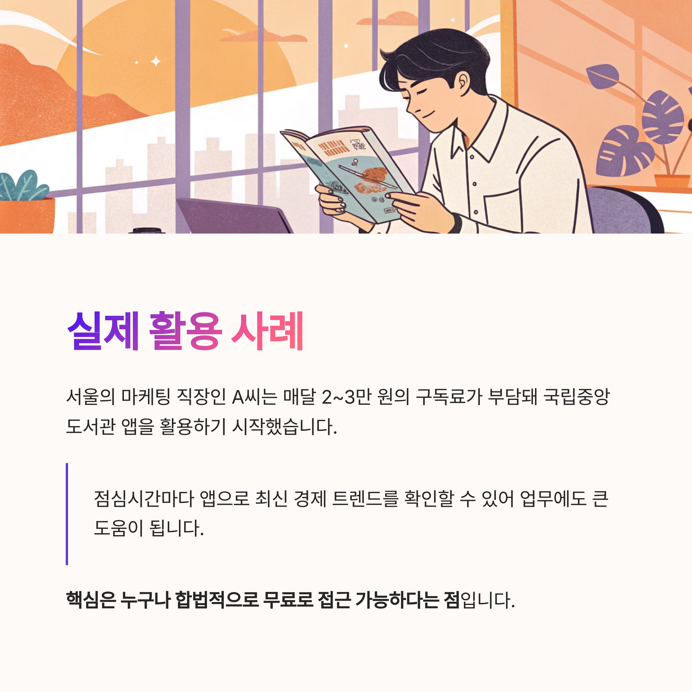 하지만 국립중앙도서관의 모바일 앱을 활용하면 이 콘텐츠들을 완전히 무료로, 합법적으로 이용할 수 있습니다.