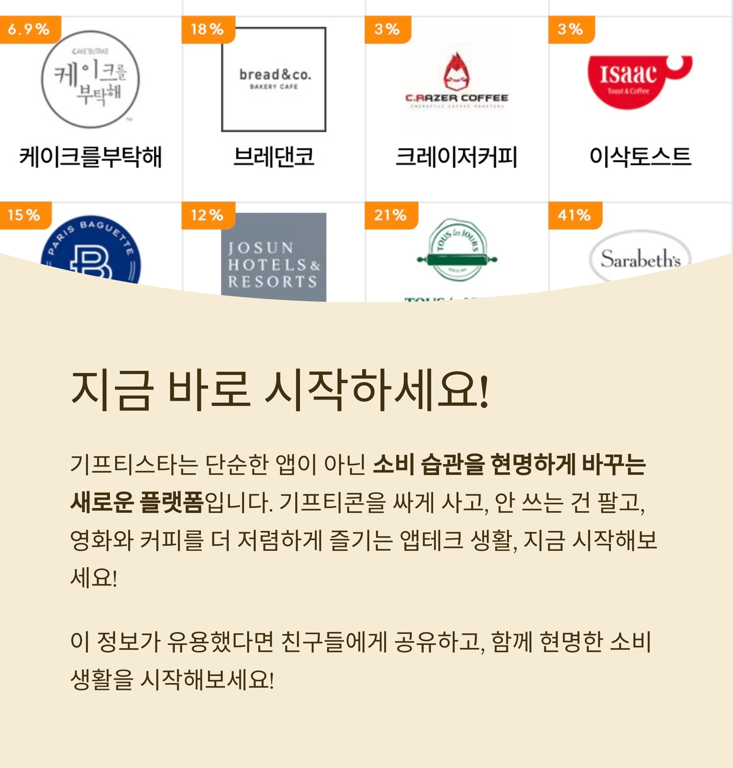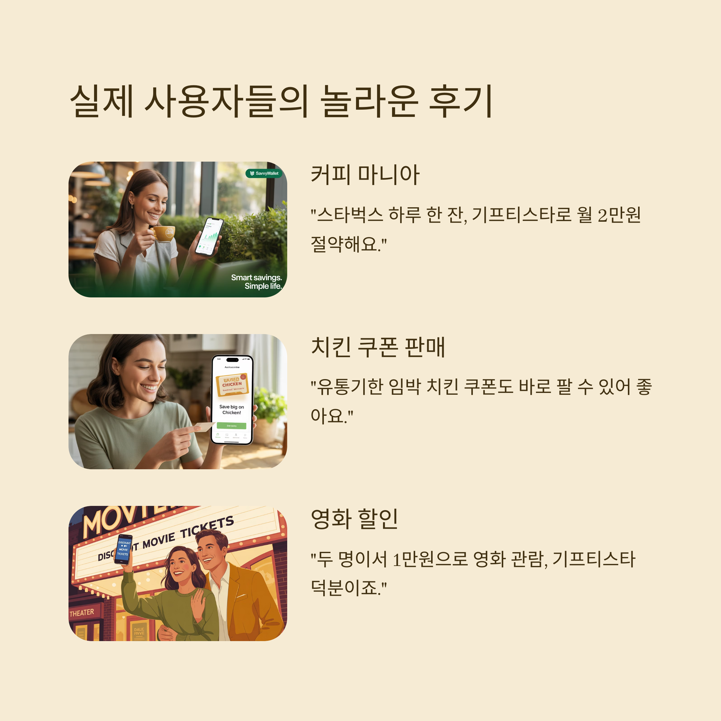 기프티스타 덕분에 월 2만 원 절약하고 있어요."