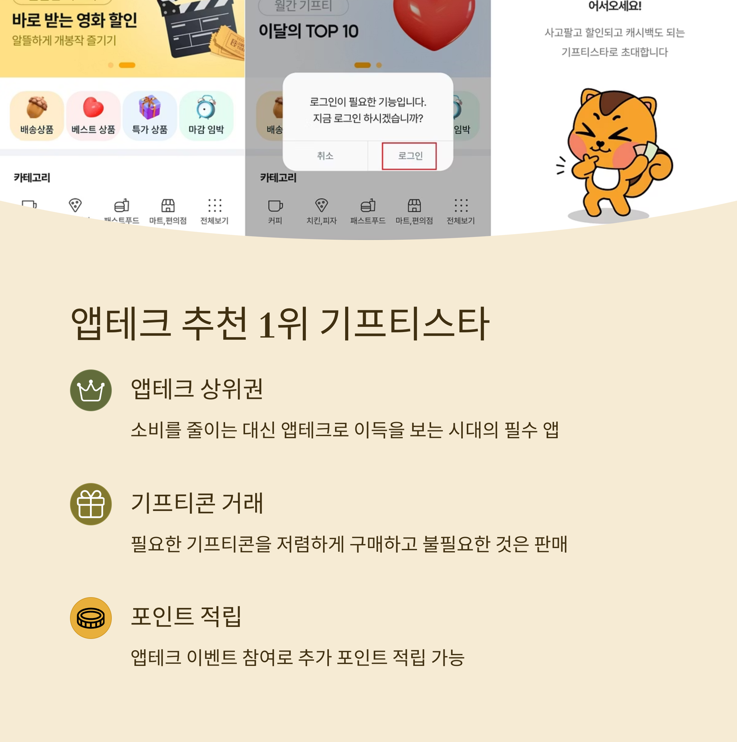 유효기간이 남아 있는 다양한 기프티콘을 할인된 가격에 사고팔 수 있는 플랫폼입니다.
