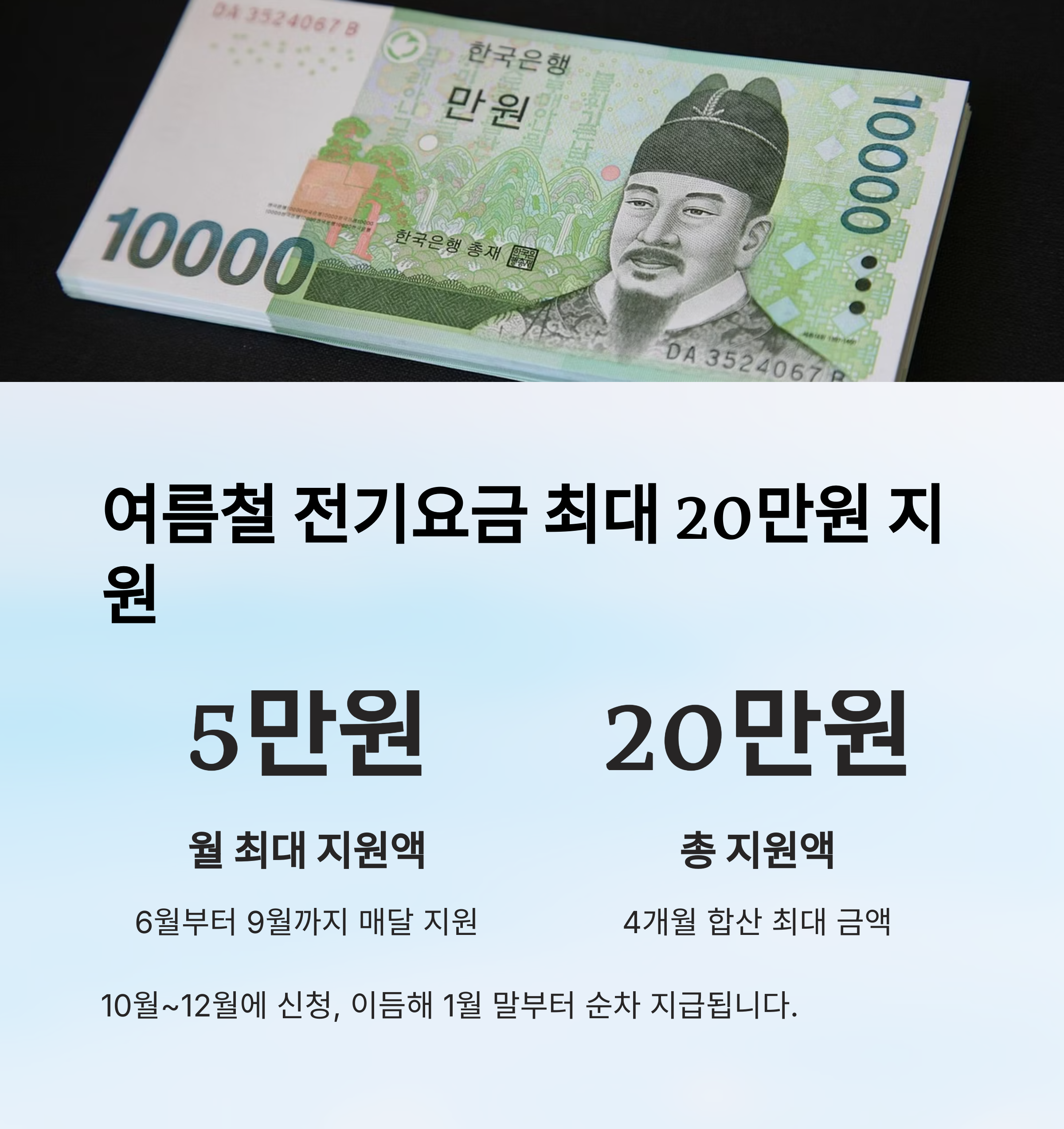 전기요금 지원: 여름철 최대 20만 원까지 지원