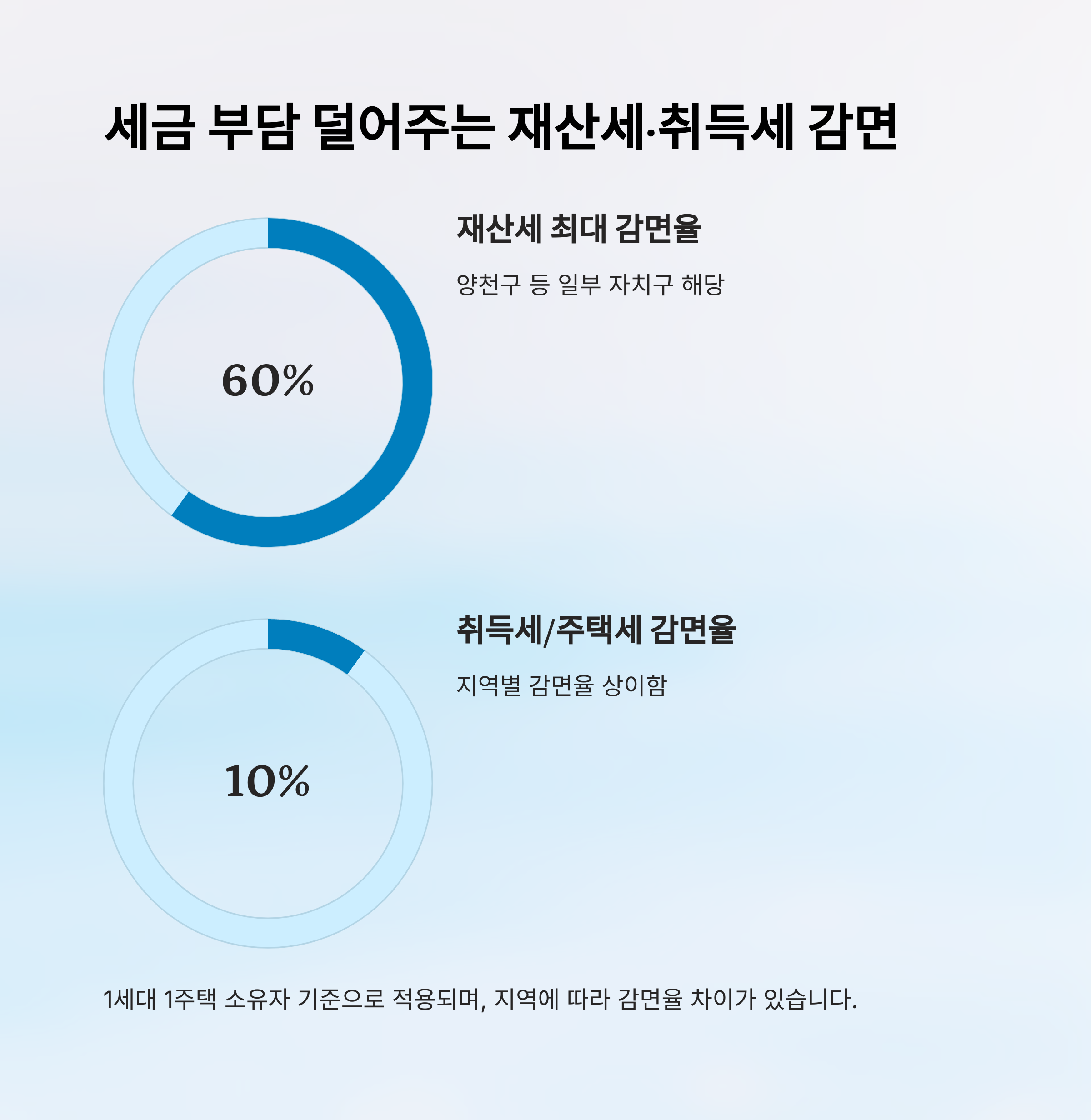 | 재산세 | 최대 60% 감면 | 양천구 등 일부 자치구 |
