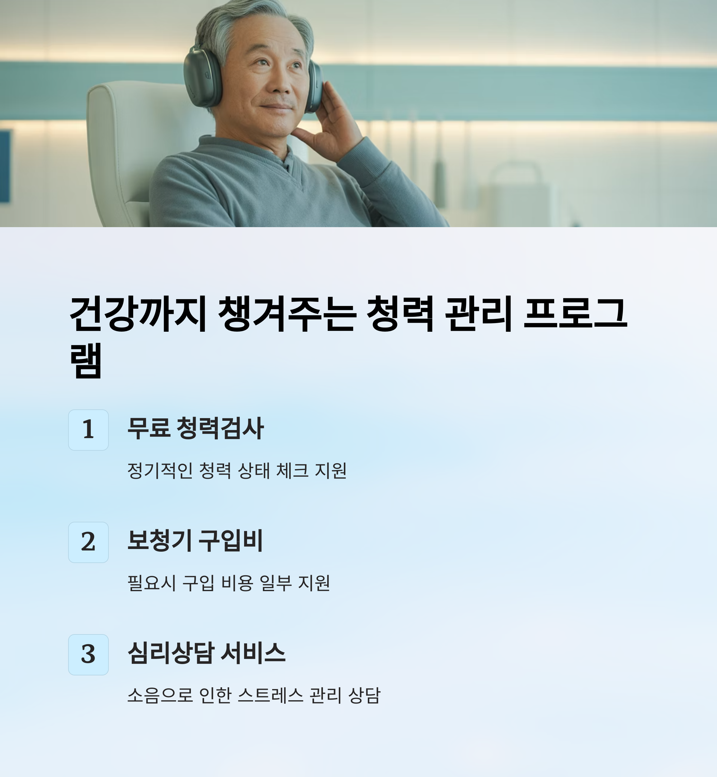 무료 청력검사, 보청기 구입비 지원 등 건강 관리 서비스도 운영됩니다.