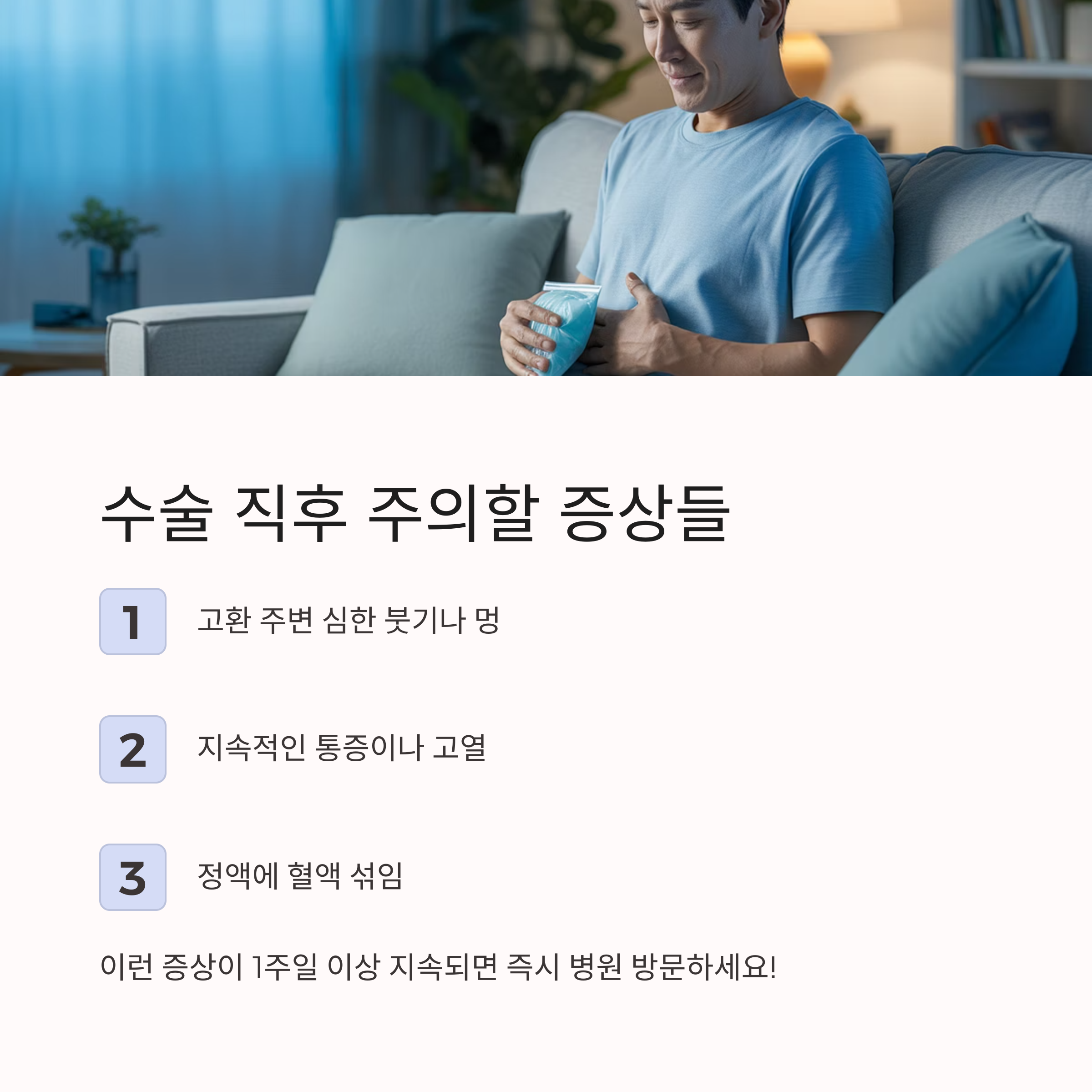 수술 후 바로 통증보다는 불편감과 묵직한 느낌이 대부분입니다.