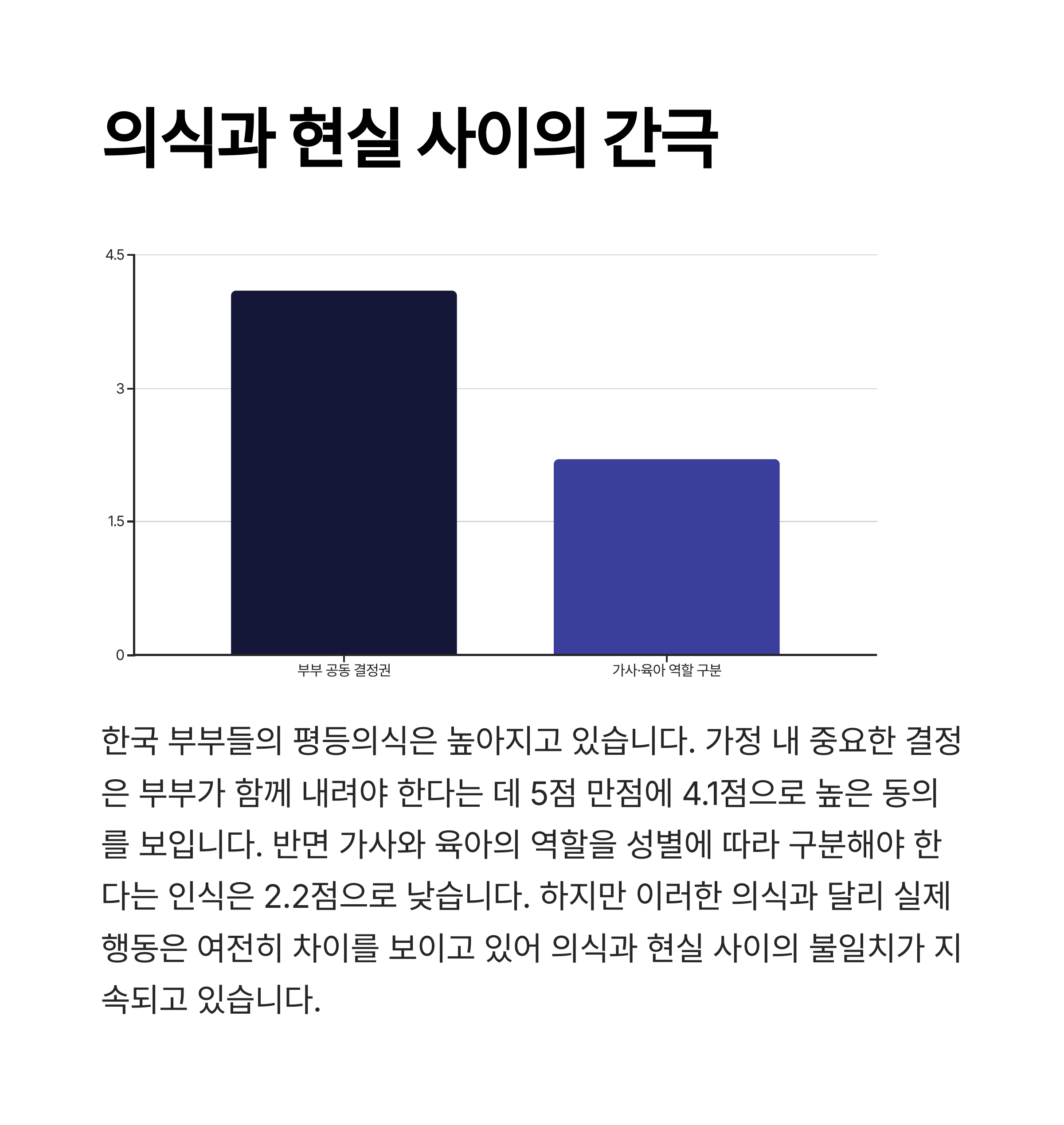 | 엄마의 가사 및 육아 비중 | 약 80% (4배 이상) |