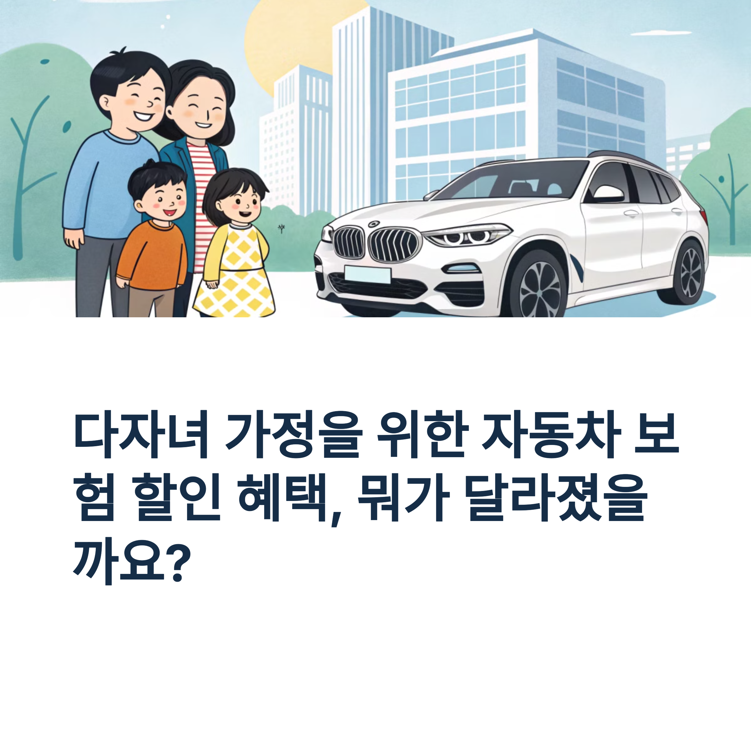 다자녀 가정은 생활비, 교육비, 교통비 등 다양한 분야에서 경제적 부담이 클 수밖에 없습니다. 이런 현실 속에서 자동차 보험 할인은 작은 절약처럼 보일 수 있지만, 장기적으로 보면 결코 무시할 수 없는 혜택입니다.