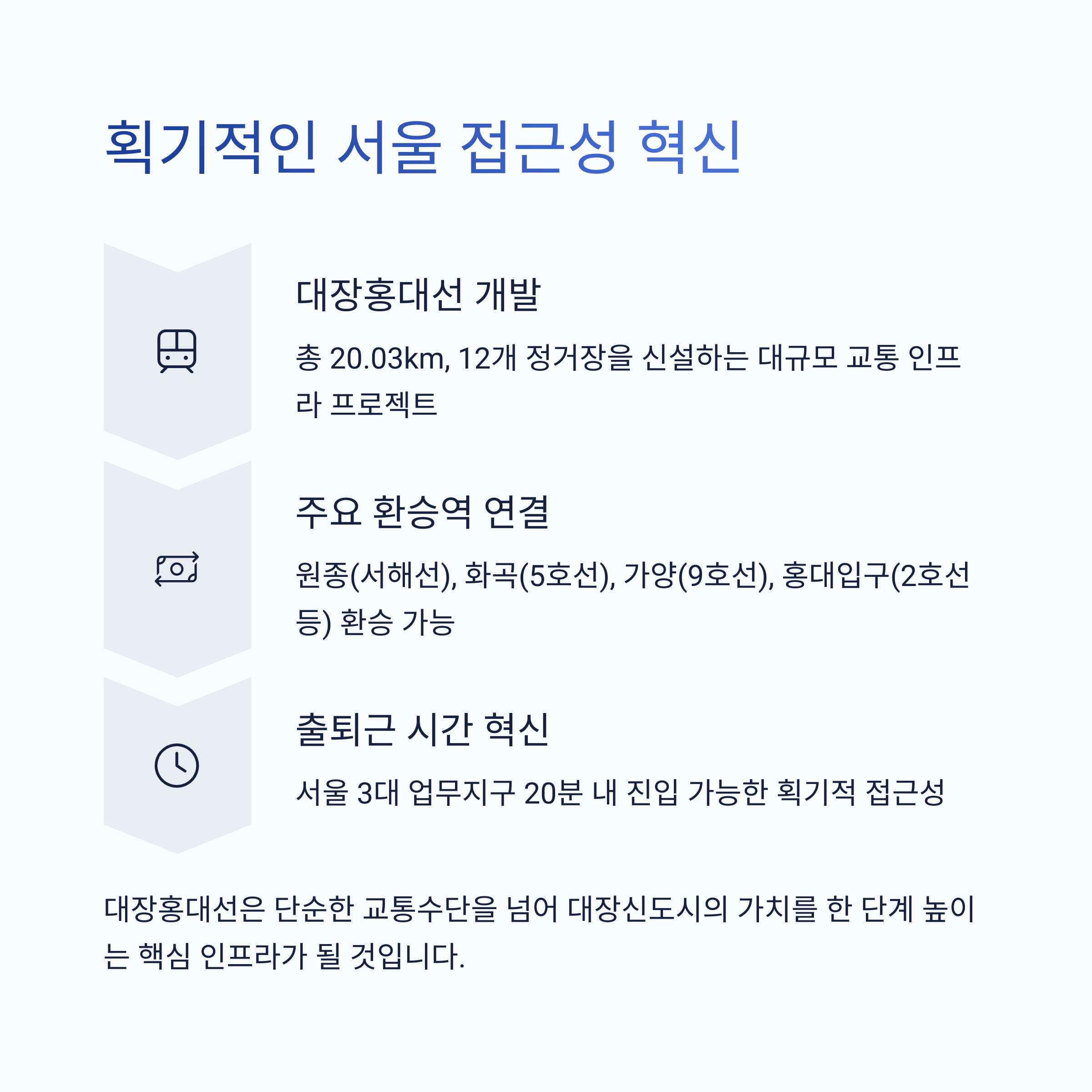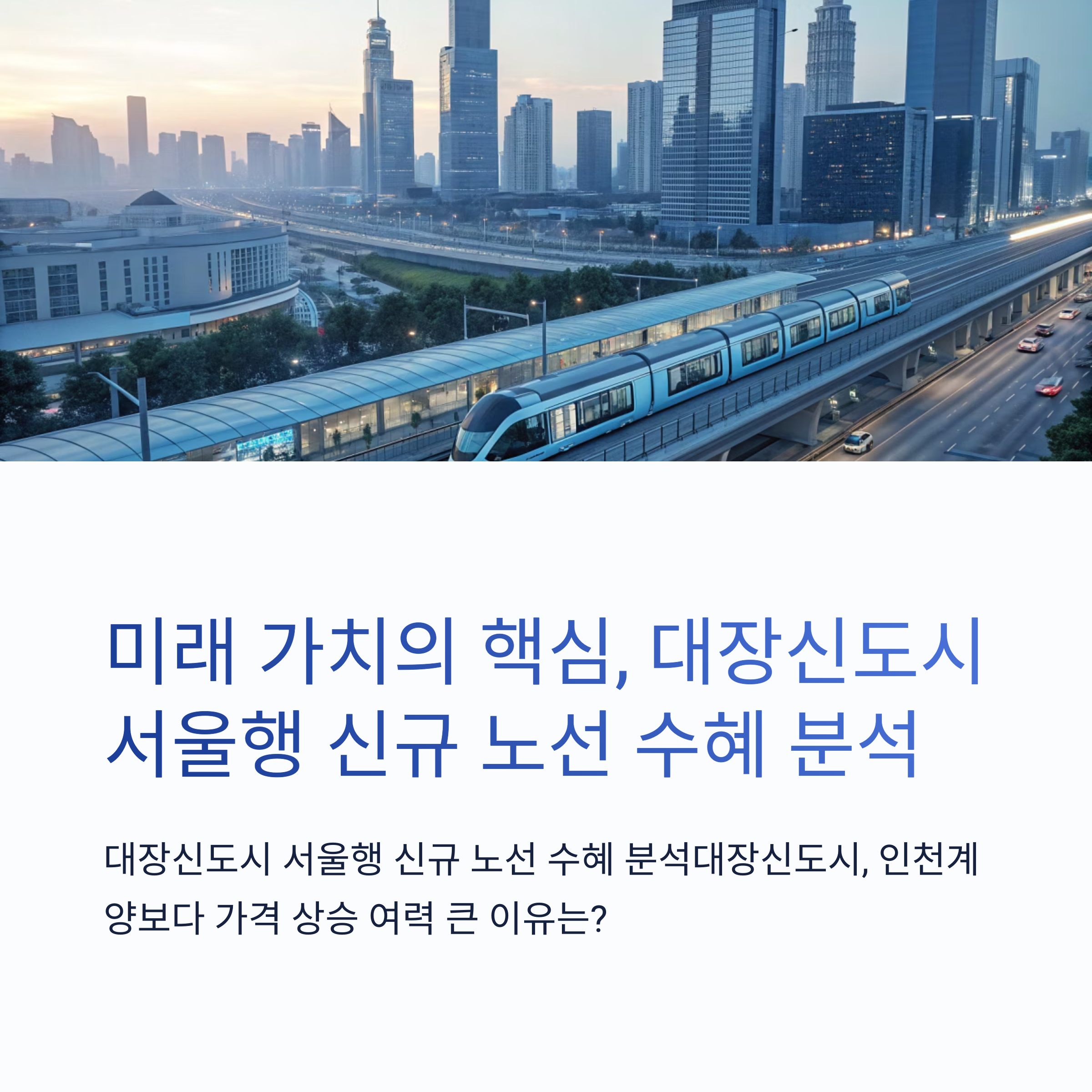 "서울 30분 생활권"이 가능해진다면, 대장신도시 인기는 더욱 치솟을 것입니다.
