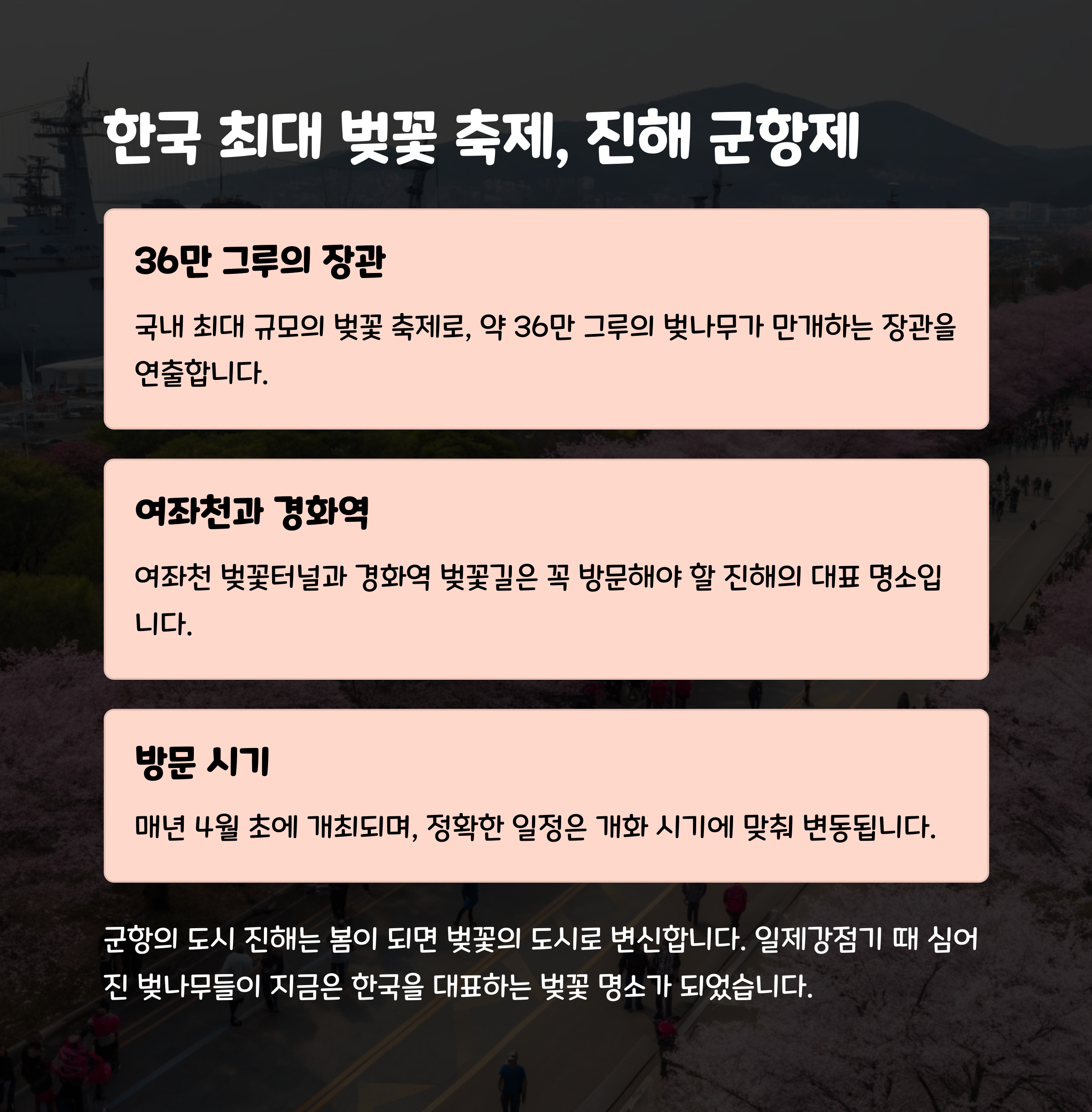 #벚꽃명소 #진해군항제 #석촌호수벚꽃 #여의도윤중로 #4월여행지 #벚꽃사진