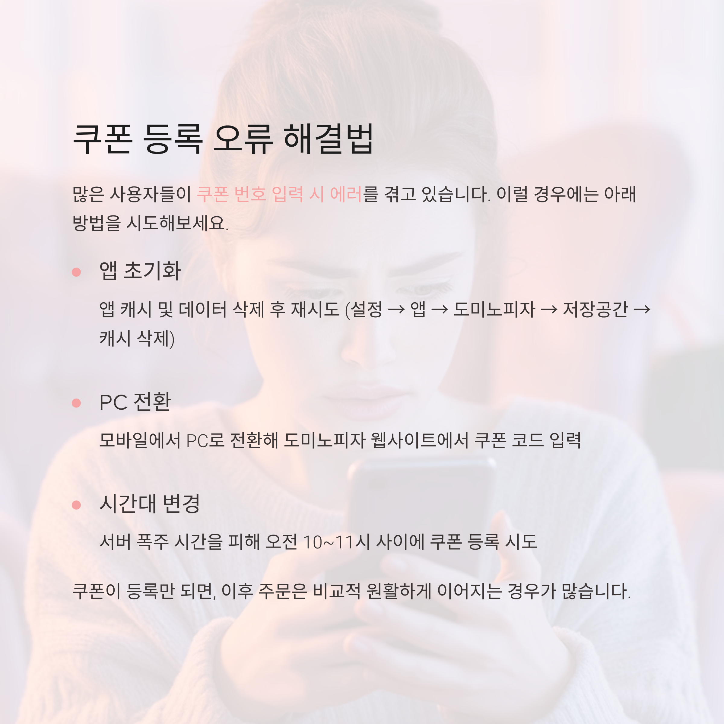 지속적으로 실패할 경우, 도미노피자 전화 주문을 고려해볼 수 있습니다.