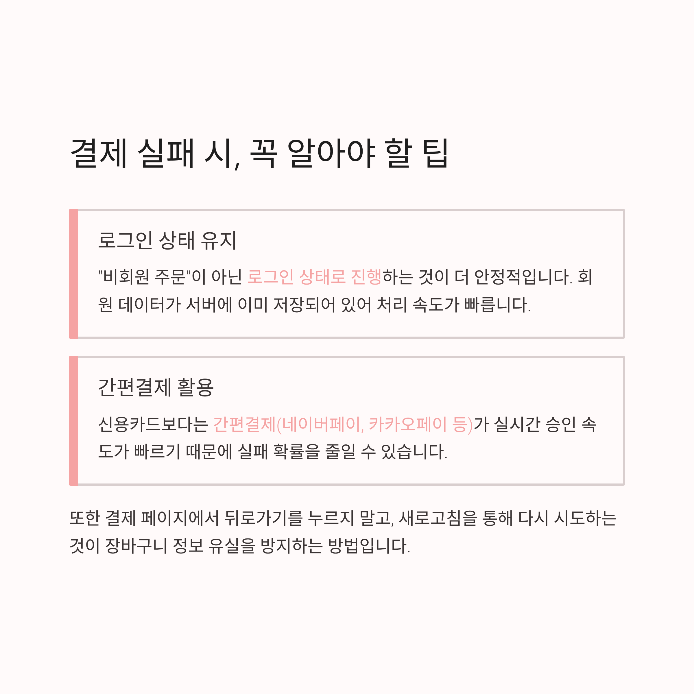 | 결제 성공률 | 낮음 | 상대적으로 높음 |