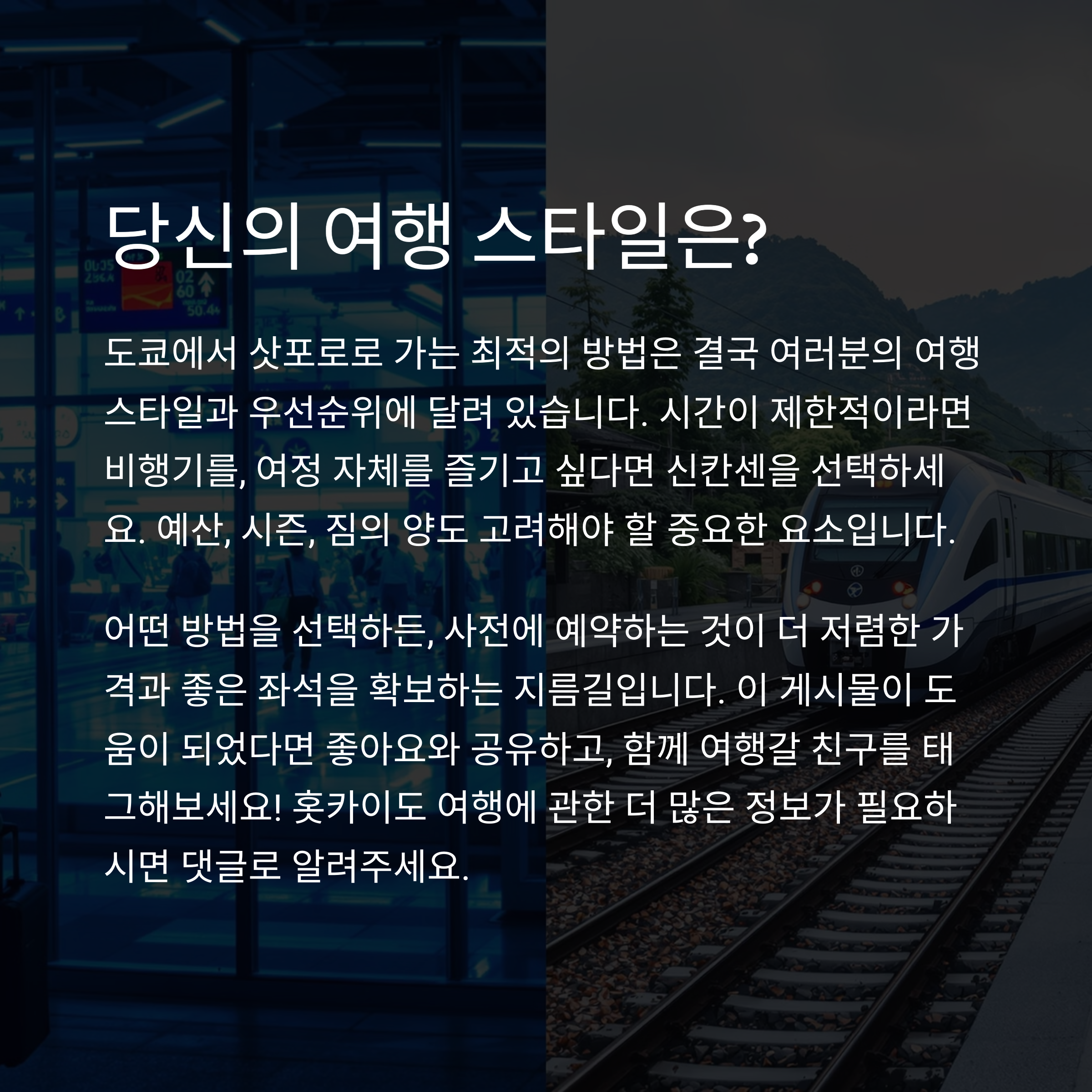 도쿄에서 삿포로로 이동하려는 계획이 있으신가요? 오늘은 비행기와 신칸센을 비교하며 최상의 이동 수단을 선택하는 법을 알려드립니다.