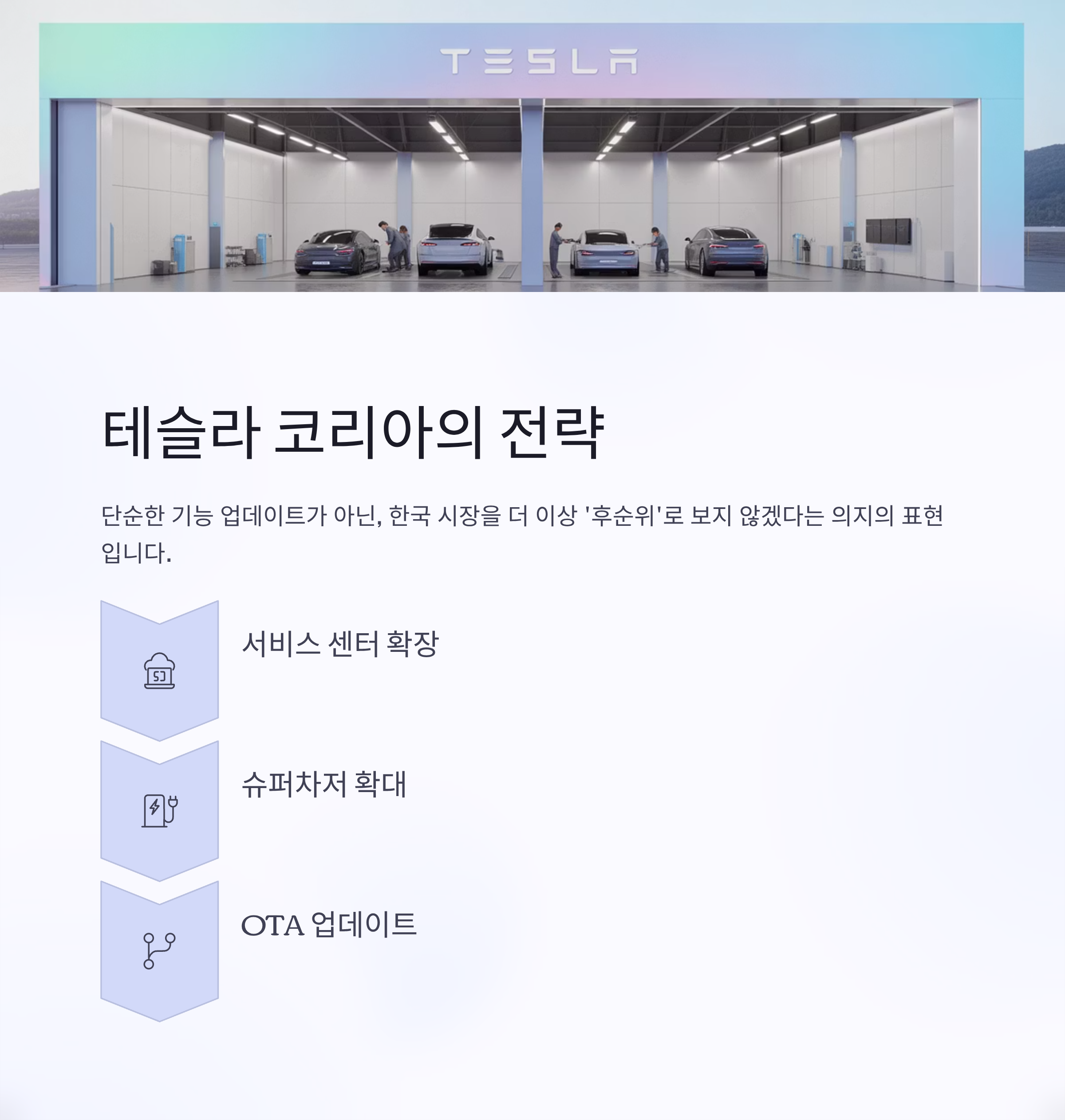 이 발표는 단순히 기능 하나의 업데이트가 아닙니다. 테슬라 코리아는 한국 시장을 더 이상 '후순위'로 보지 않겠다는 의지를 표현한 것으로 해석됩니다.