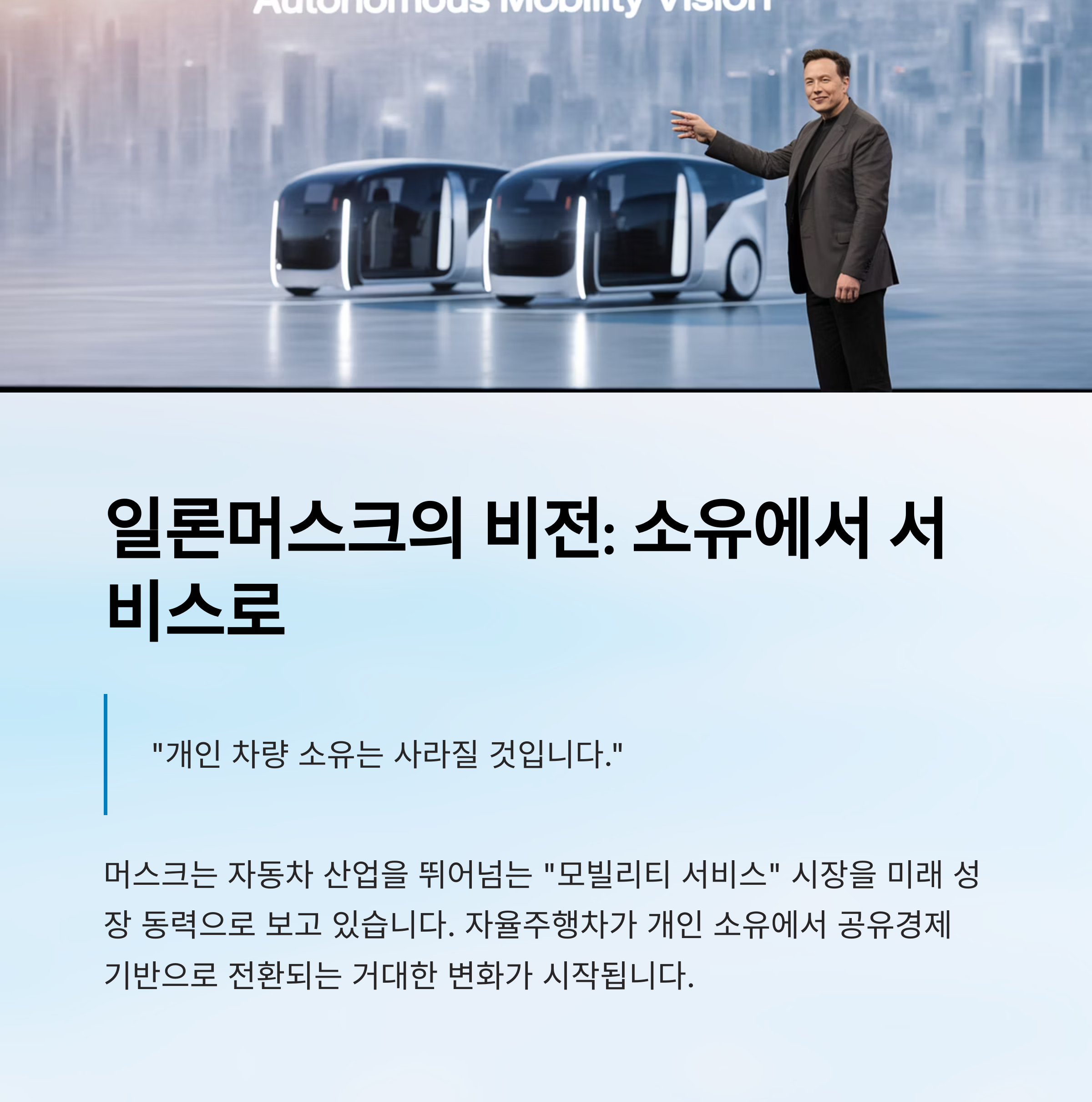 그는 "개인 차량 소유는 사라질 것"이라며,