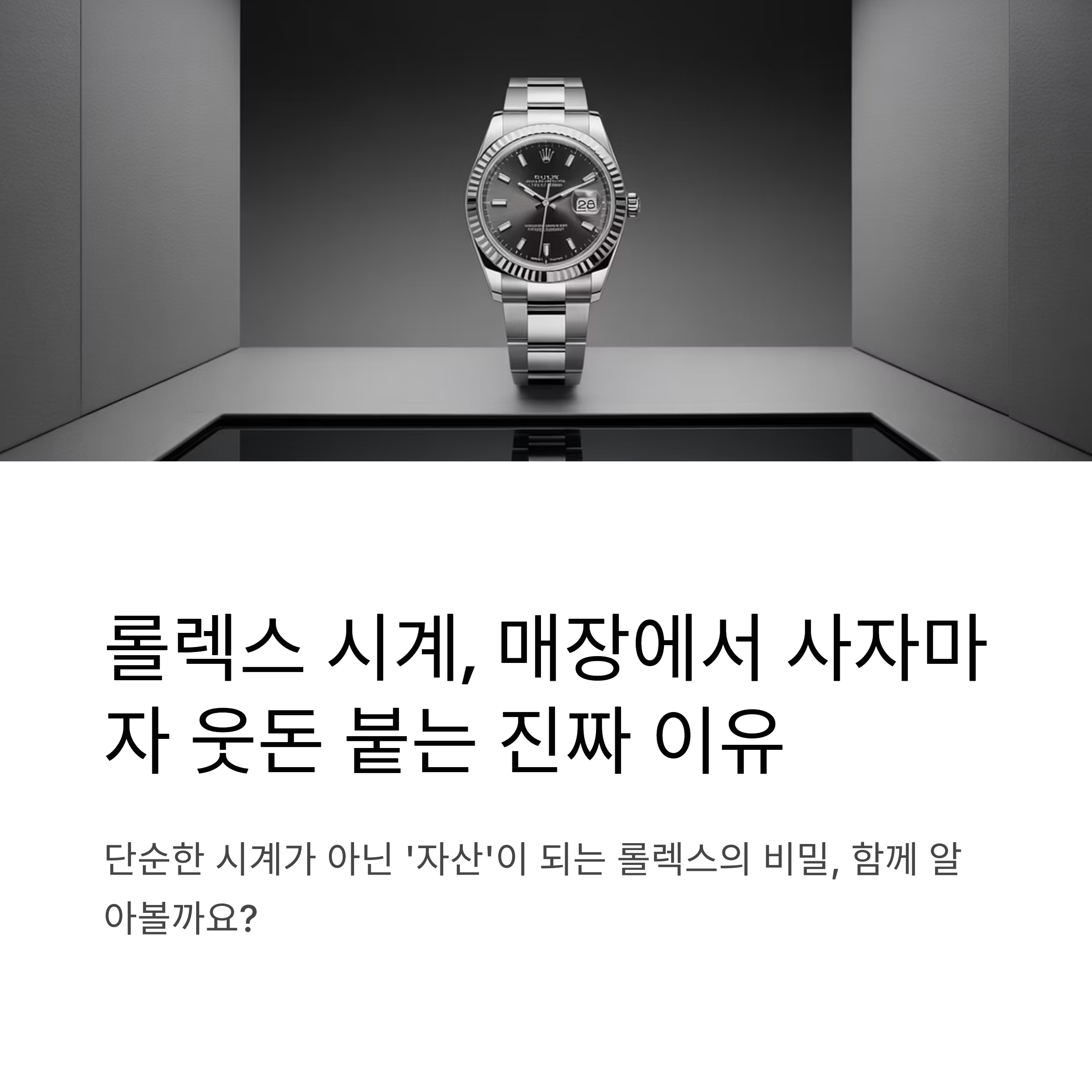 롤렉스 시계는 단순한 시계 그 이상입니다. 명품, 자산, 투자처라는 상징성까지 더해지며 정가에 구매하기조차 어려운 브랜드가 되었죠. 특히 롤렉스 매장에서 시계를 구매하면 ‘그 순간’부터 수백만 원, 수천만 원의 웃돈이 붙는 현상은 실물경제와 리셀 시장을 이해하는 데 좋은 사례로 꼽힙니다. 이번 글에서는 2천만 원 미만 모델과 2천만 원 이상 모델로 나눠, 각각 왜 웃돈이 붙는지 구체적으로 설명드리겠습니다.