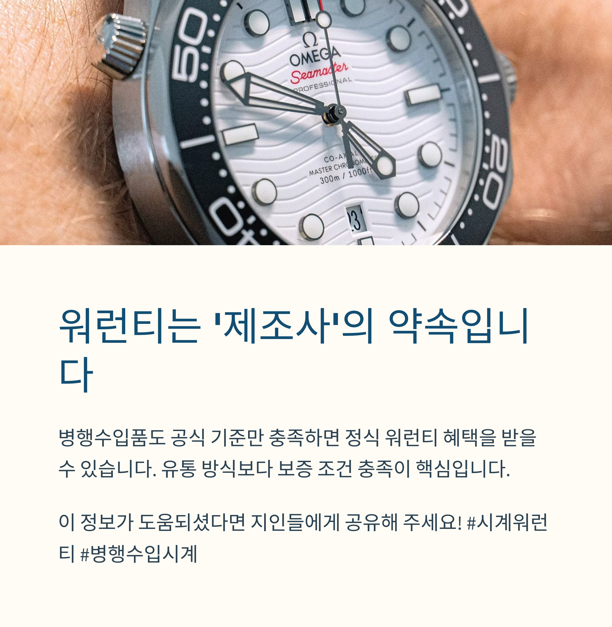 이 조건만 잘 지킨다면, 병행수입 시계라도 월드워런티를 받을 수 있는 가능성은 충분합니다.