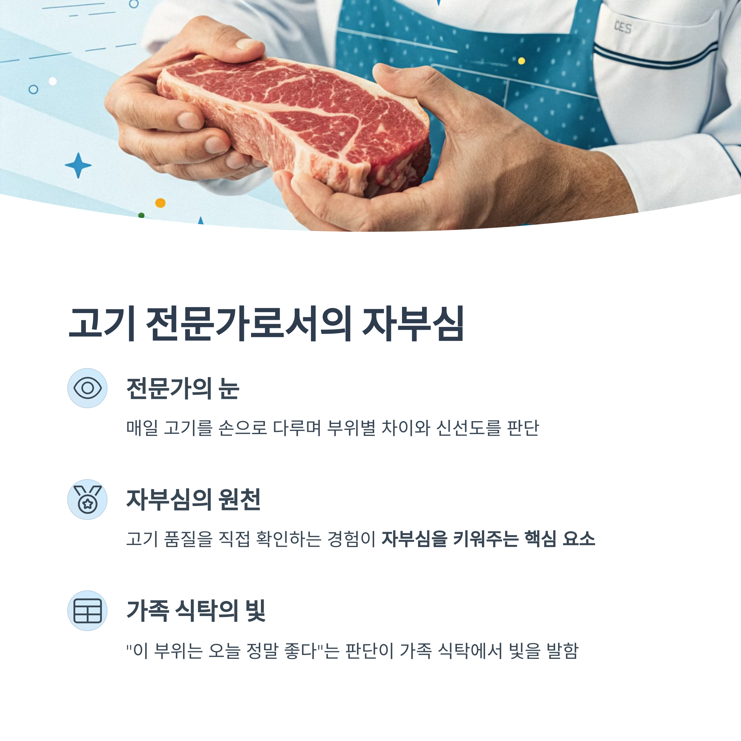 매일 고기 품질을 직접 확인하는 눈, 곧 자부심