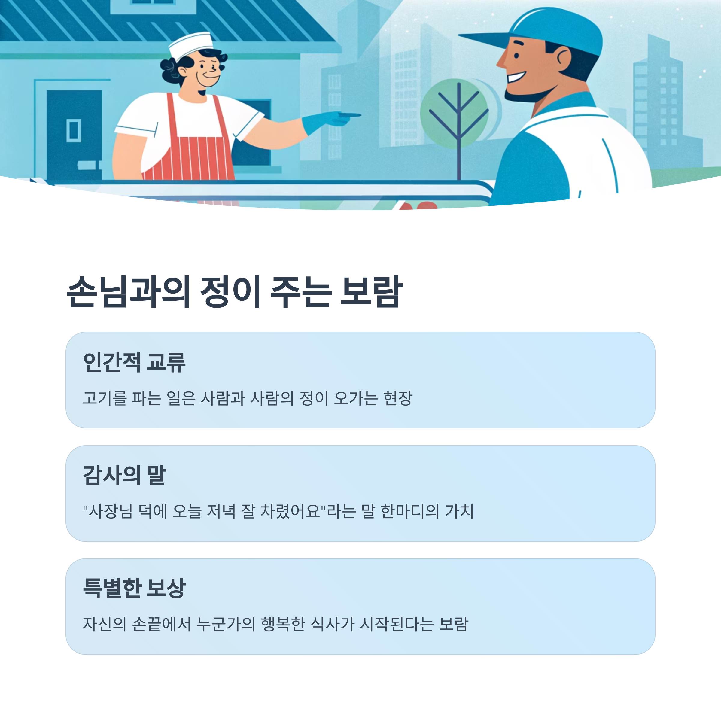 고기를 파는 일은 사람과 사람의 정이 오가는 현장이기도 합니다.