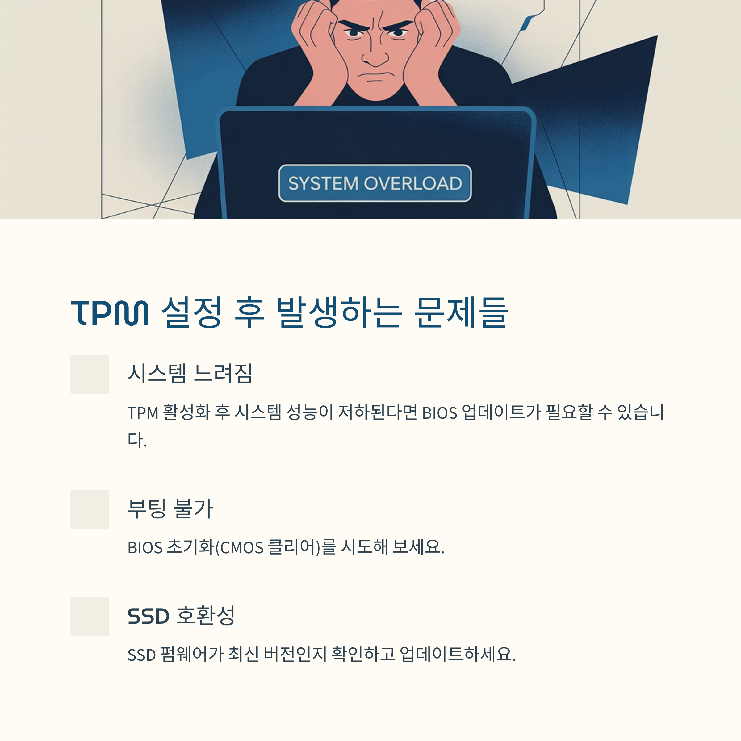 TPM 설정 후 부팅이 안 되거나 시스템 느려짐 증상