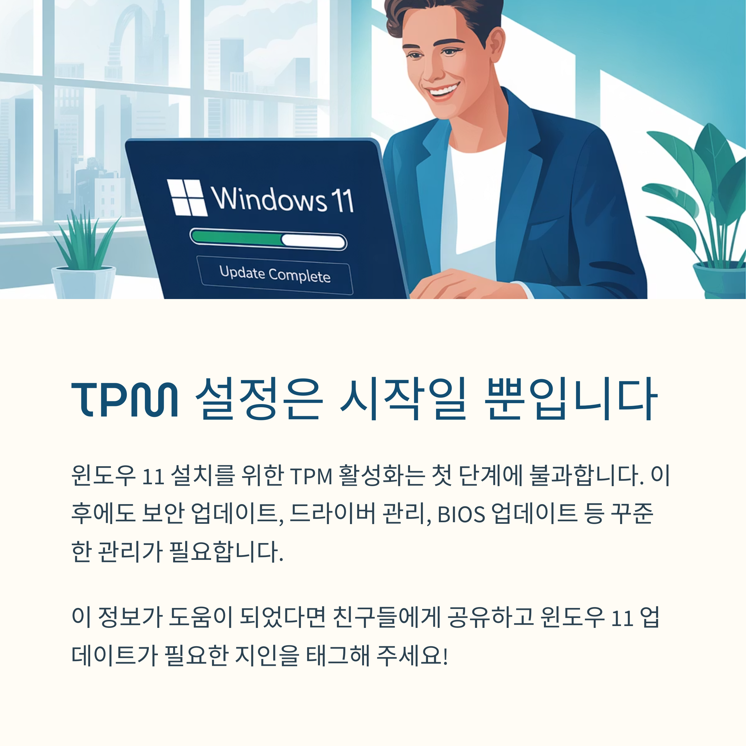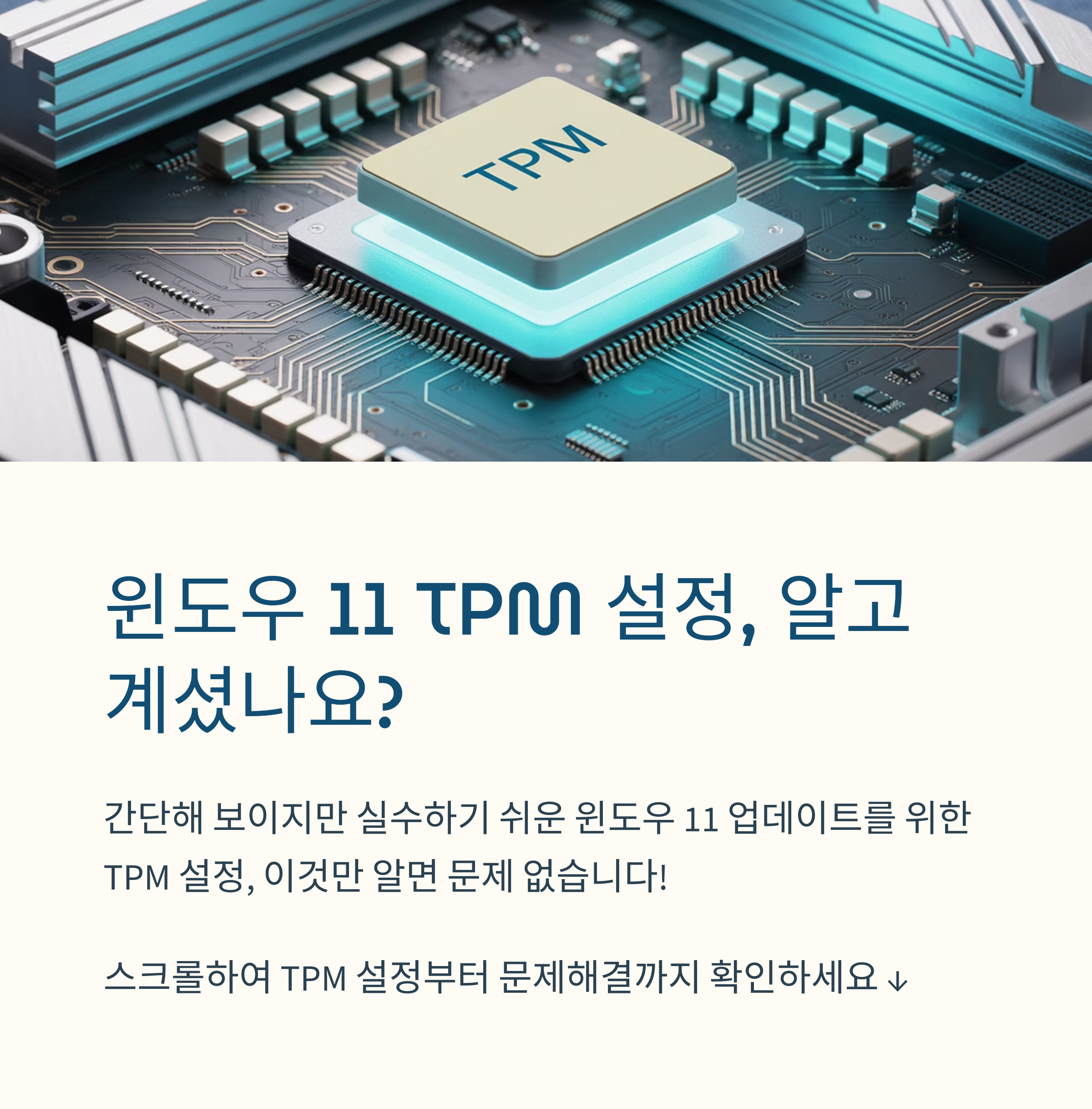 윈도우 11로 업데이트하기 위해 메인보드의 TPM 설정을 활성화하는 과정은 간단해 보이지만, 실제로는 몇 가지 주의사항이 함께 따릅니다. 또한 TPM 설정 이후에도 장기적으로 시스템이 문제없이 작동할지 걱정되는 경우가 많은데요. 이 글에서는 TPM 활성화부터 윈도우 11 지속 사용까지의 전체 과정을 총정리하고, 자주 발생하는 문제와 해결 팁까지 함께 안내해 드리겠습니다.