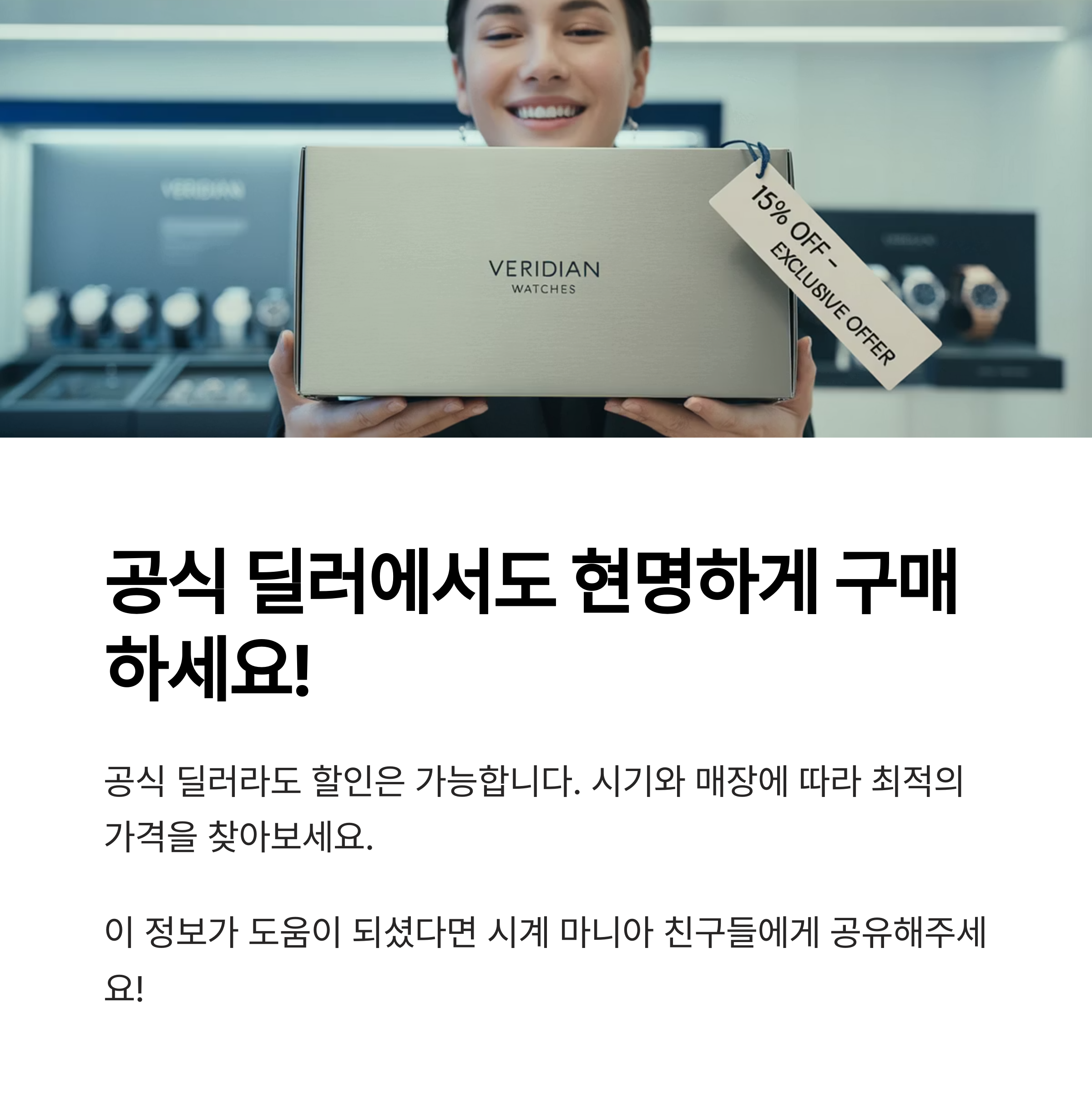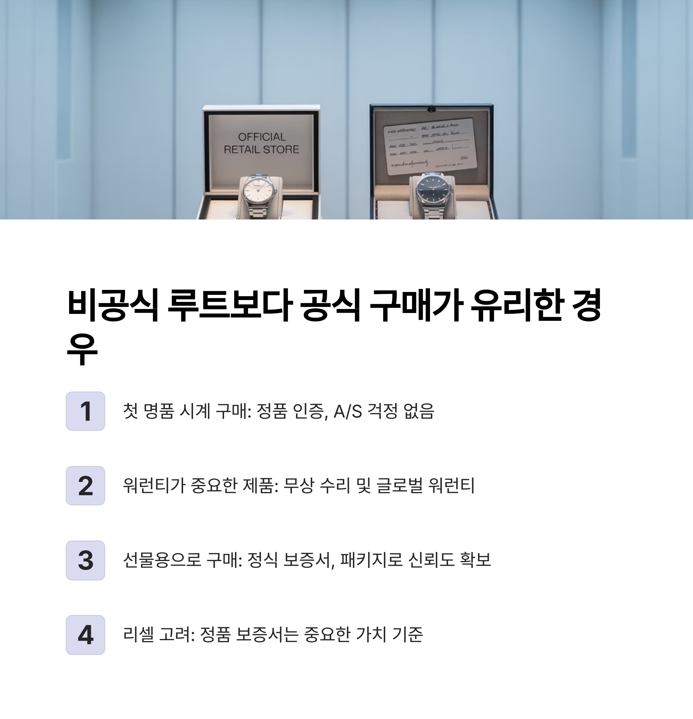 | 첫 명품 시계 구매 시 | 정품 인증, A/S 걱정 없음 |