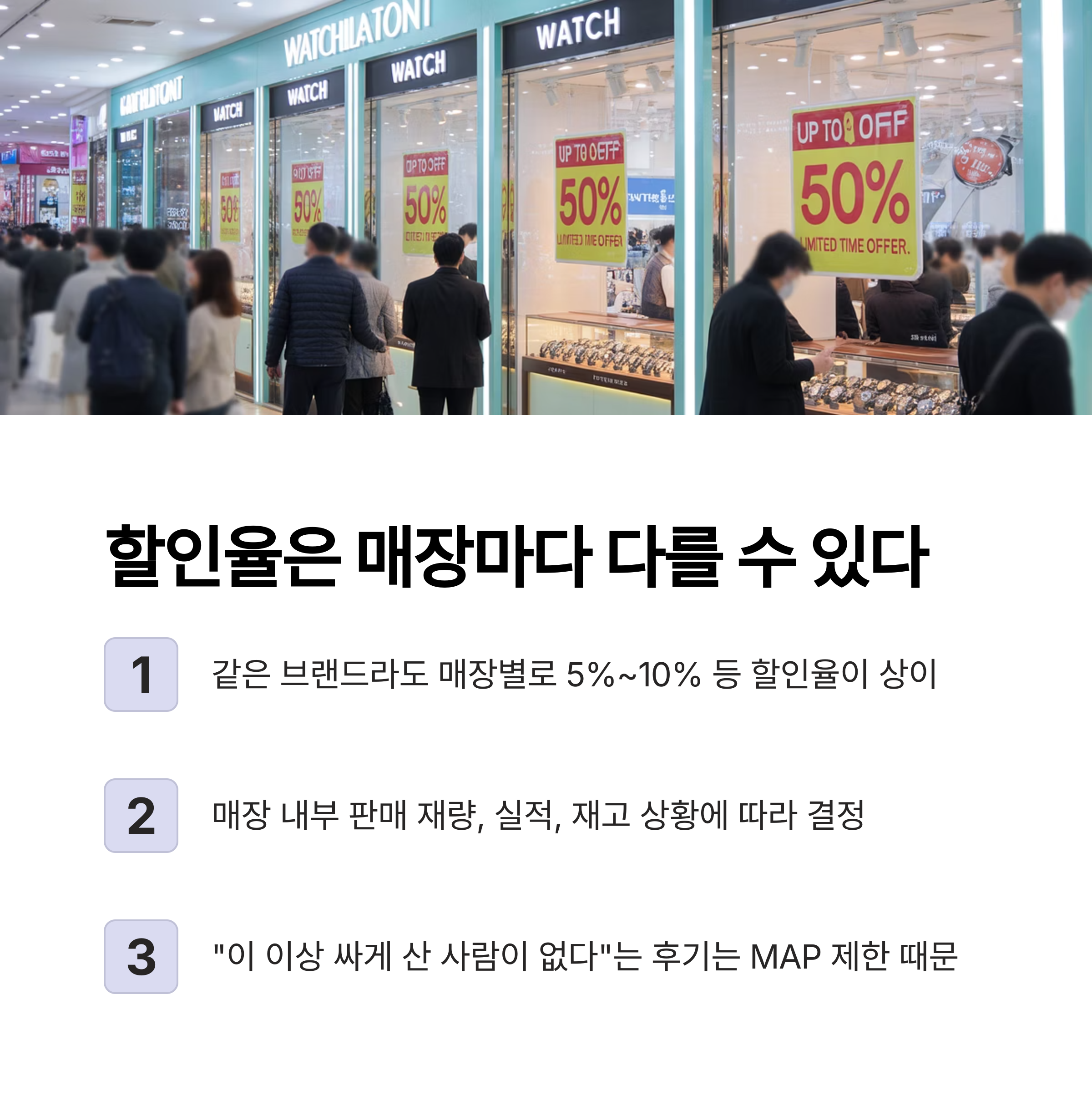 그 할인율은 매장별·시기별로 매우 다릅니다.