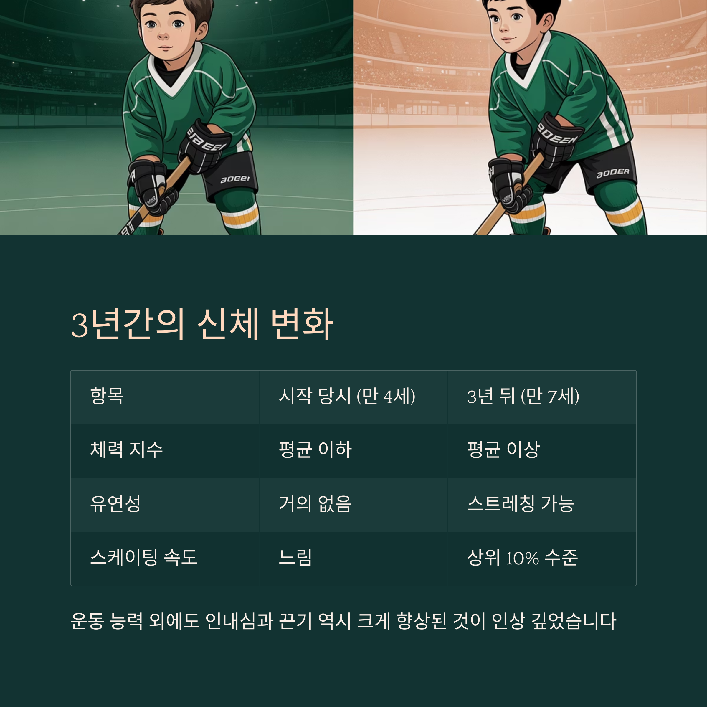 목동에서 4세 아이가 하키를 시작한 뒤, 3년 동안 어떤 변화가 있었는지