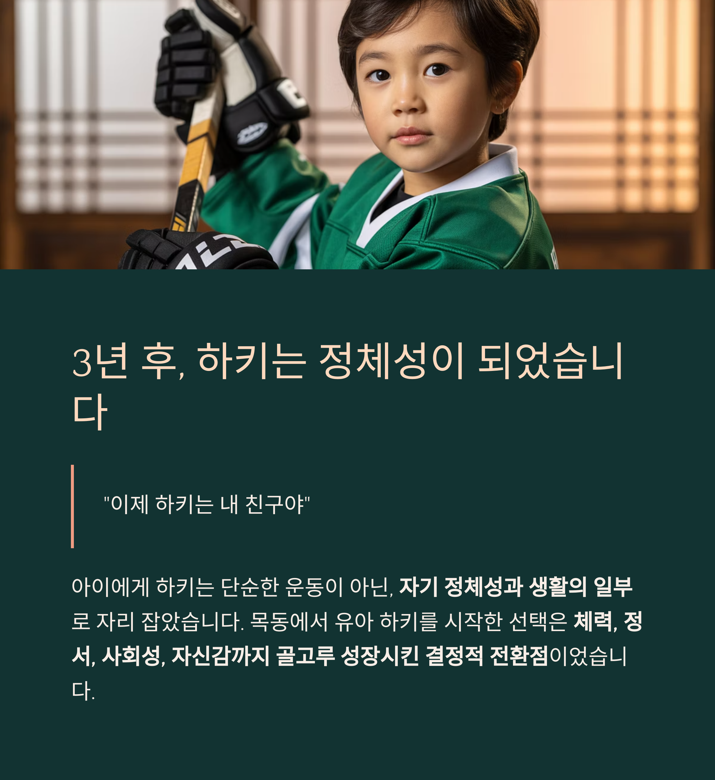 아이에게 하키는 단순한 운동이 아닌,