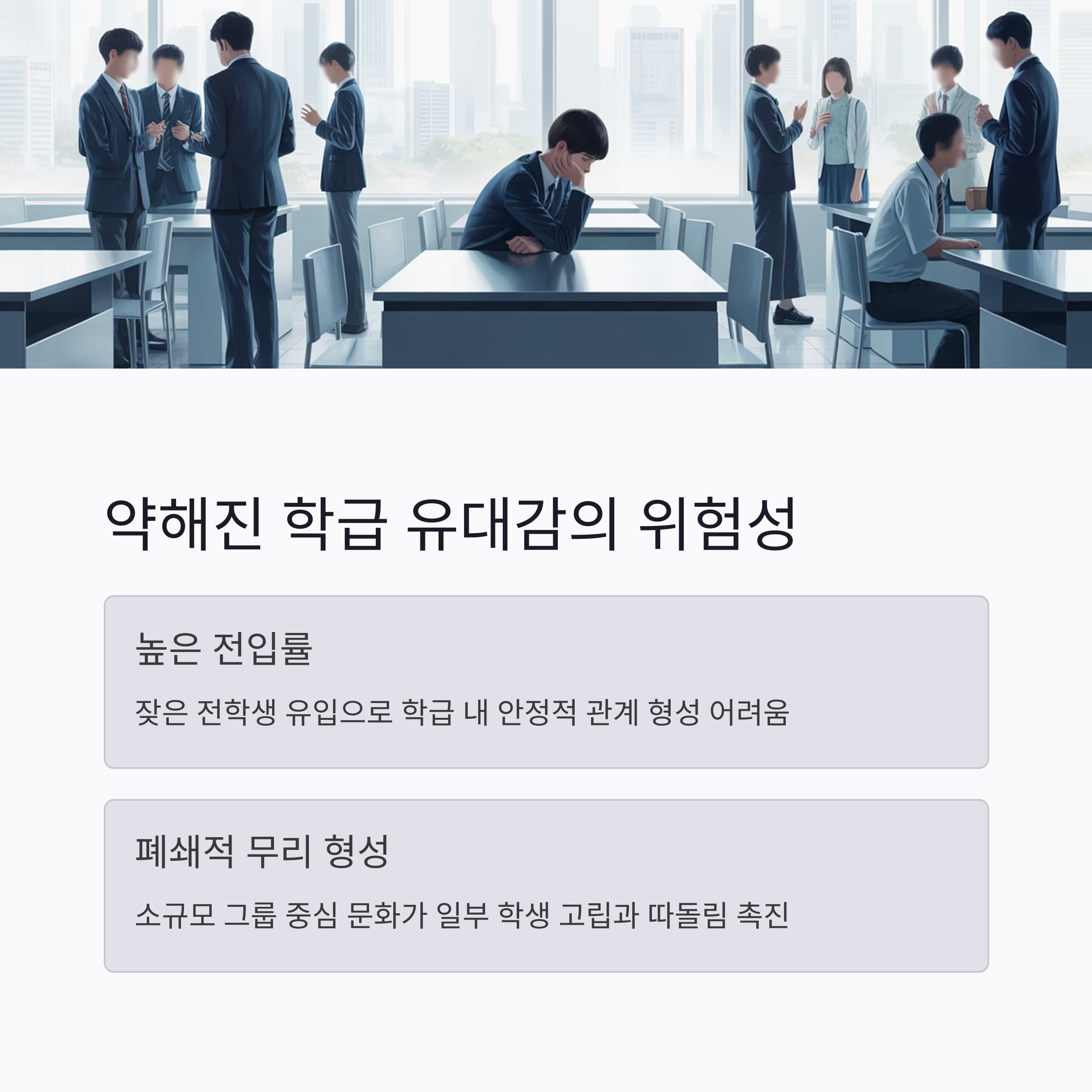 학생들 간 무리 형성 현상이 두드러집니다. 이러한 환경은 일부 학생의