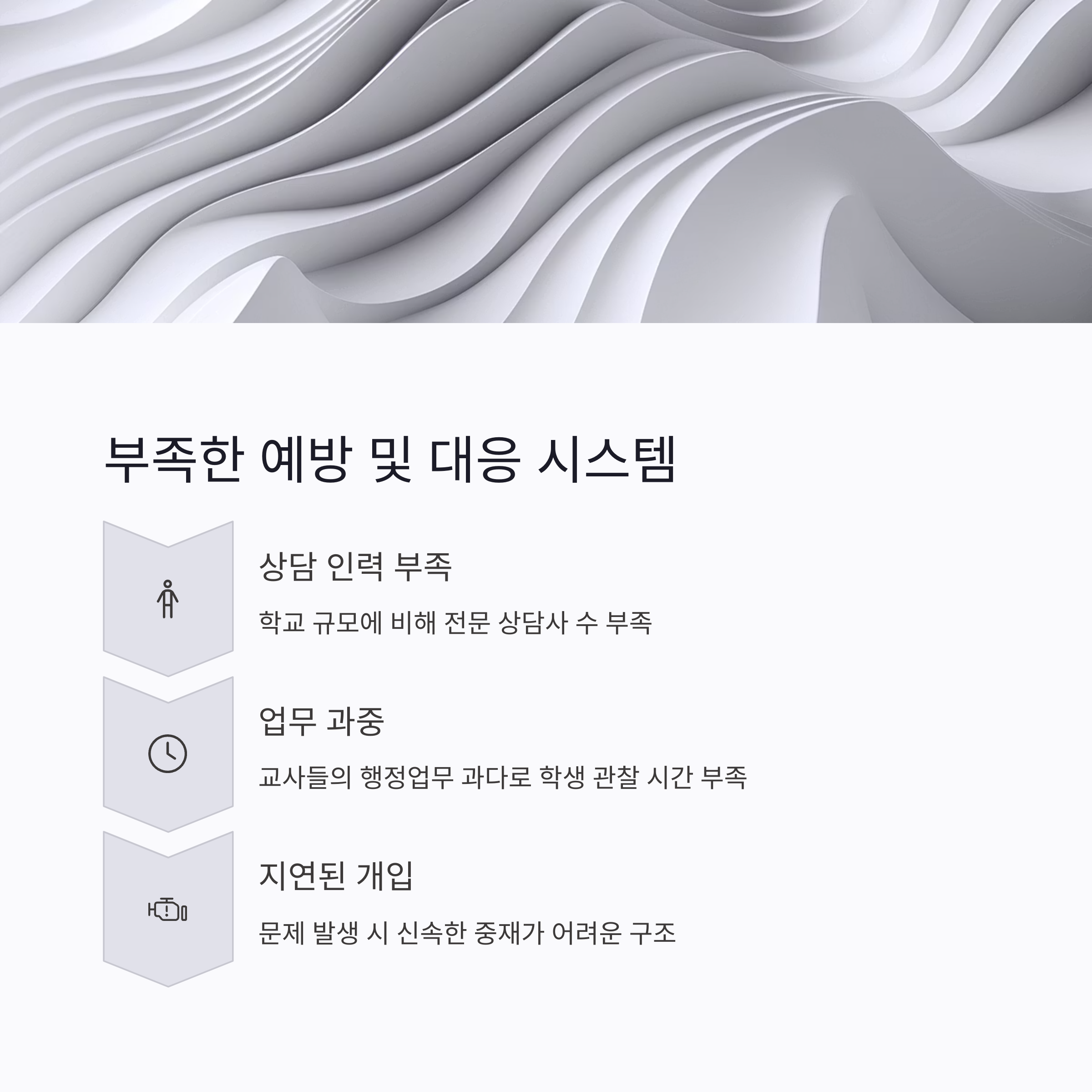 | 교육청 | 컨설팅 운영, 실태조사 분석 | 장기적 커리큘럼 설계, 전문 인력 확충 |