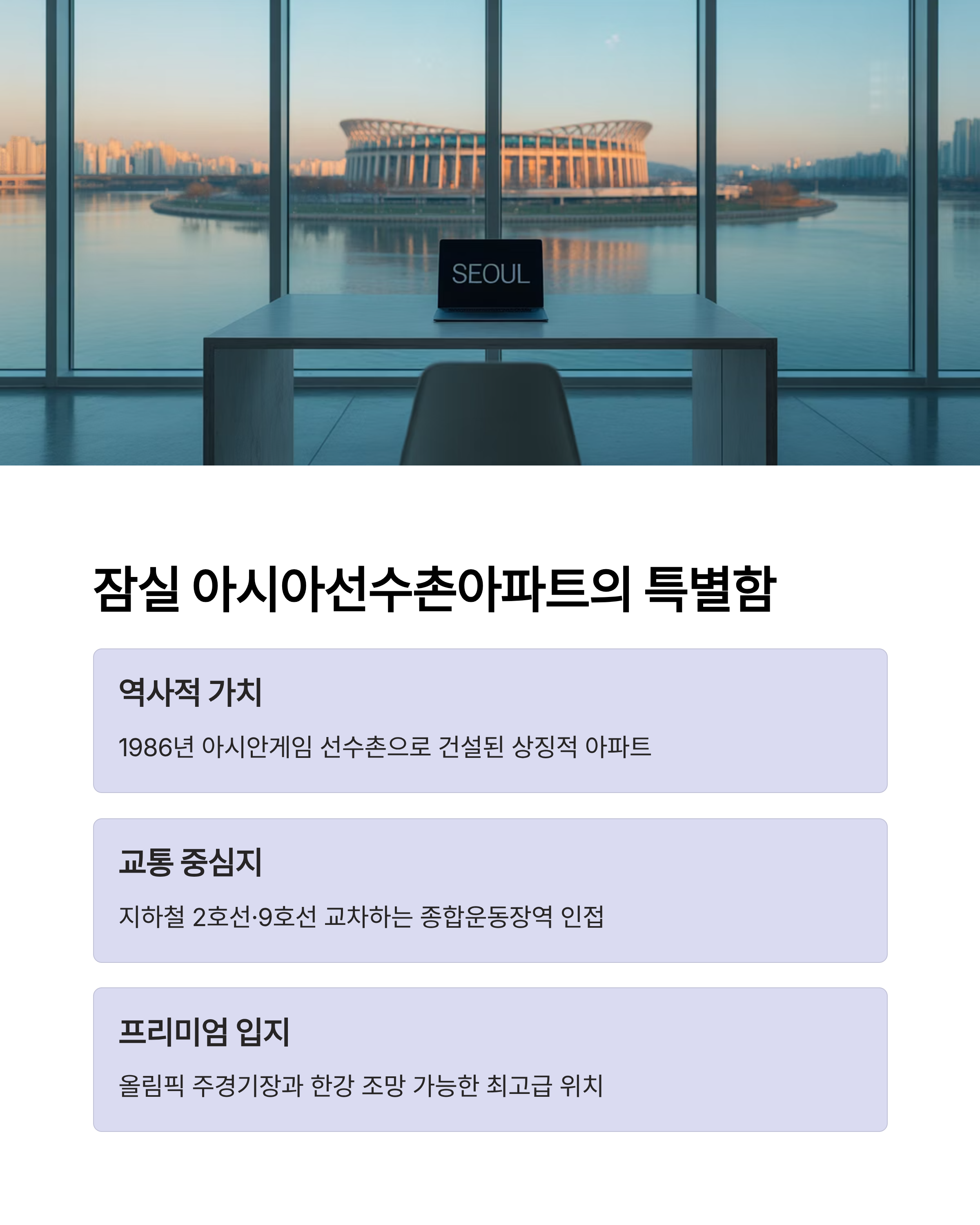 잠실 아시아선수촌아파트는 단순히 주거 공간 이상의 의미를 가집니다. 1986년 아시안게임 선수단 숙소로 지어졌고, 잠실 종합운동장 일대라는 상징성을 가지고 있어요.
