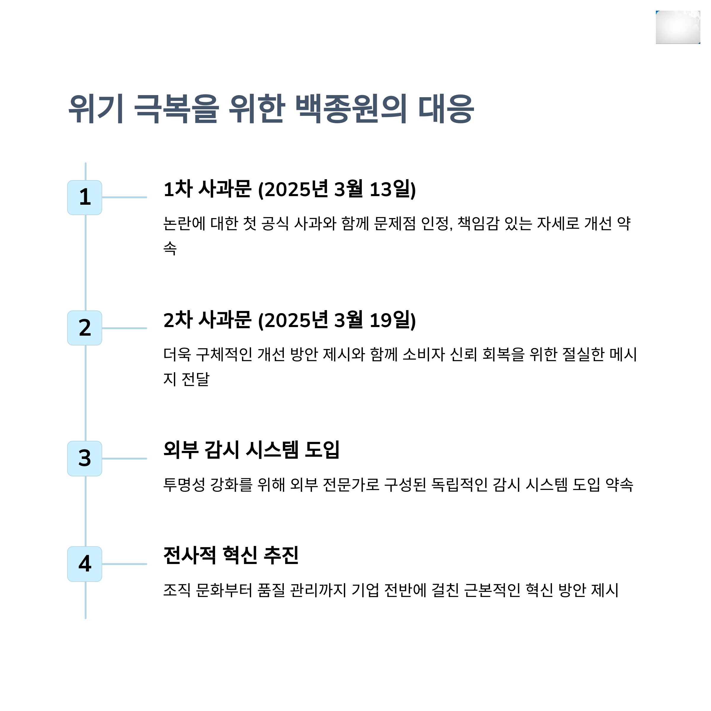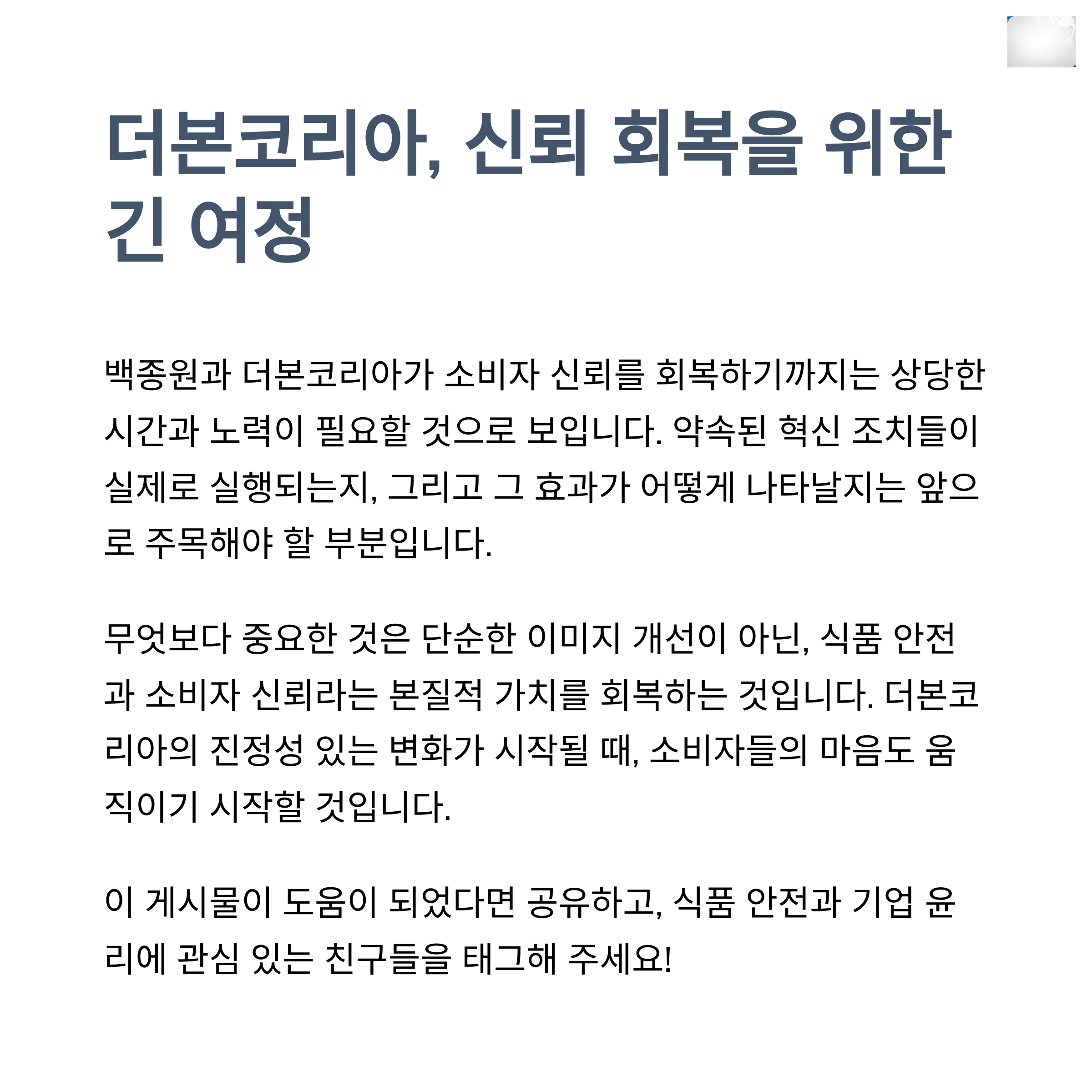 이번 일련의 사건들은 단순한 해프닝이 아닌, 프랜차이즈 기업 운영의 구조적 문제와 윤리성 결여를 드러내는 지표로 볼 수 있습니다. 특히 소비자들의 SNS 반응을 살펴보면 "더는 믿고 먹을 수 없다", "이미지는 좋았지만 현실은 달랐다"와 같은 실망의 목소리가 주를 이룹니다. 백종원 대표 개인의 커리어에도 큰 타격이지만, 더본코리아 전체 브랜드의 미래에도 중대한 영향을 미치고 있습니다. 이제는 단순한 사과가 아닌, 실질적인 개선과 투명한 경영이 요구되는 시점입니다.