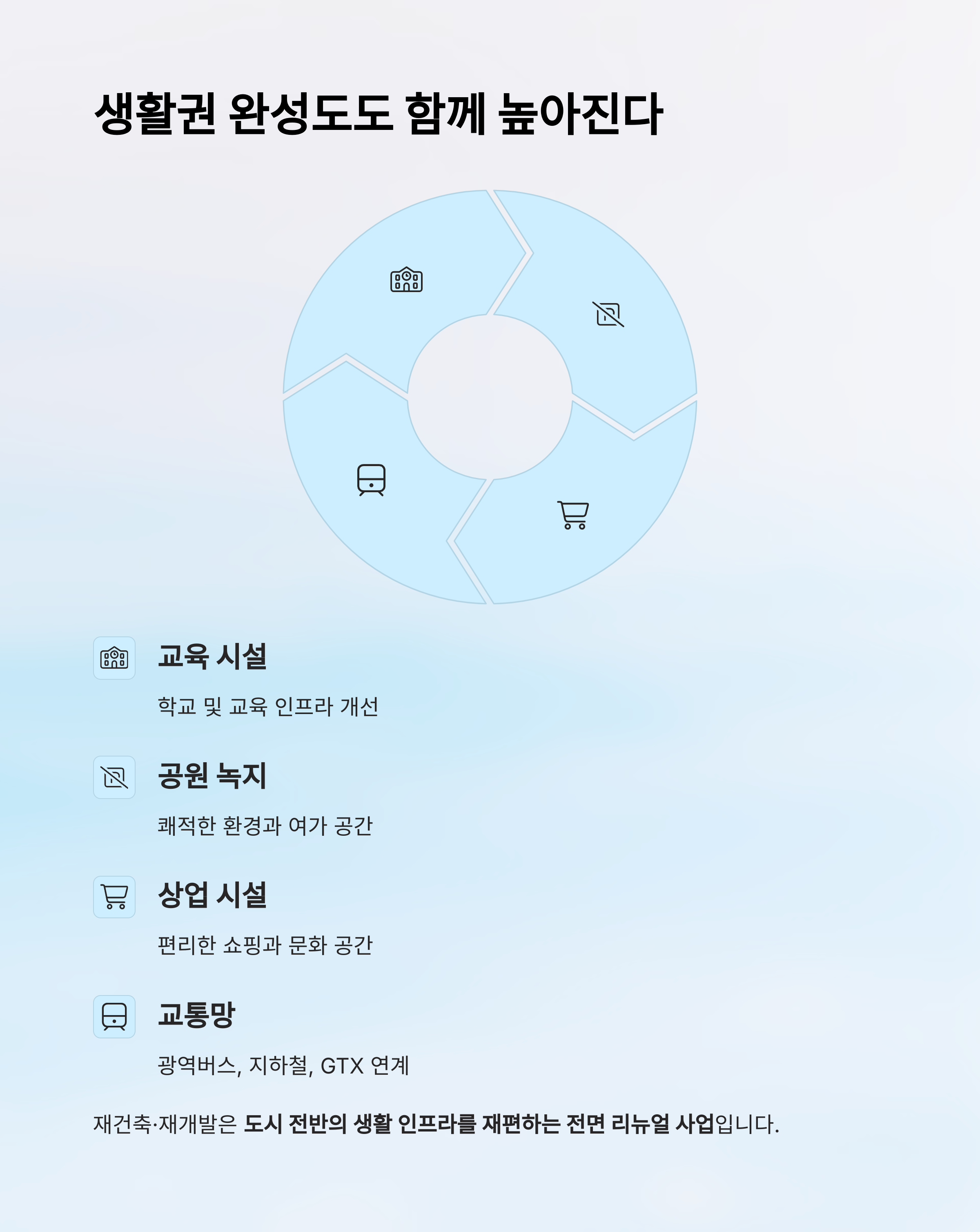도시 전반의 생활 인프라를 재편하는 전면 리뉴얼 사업입니다.