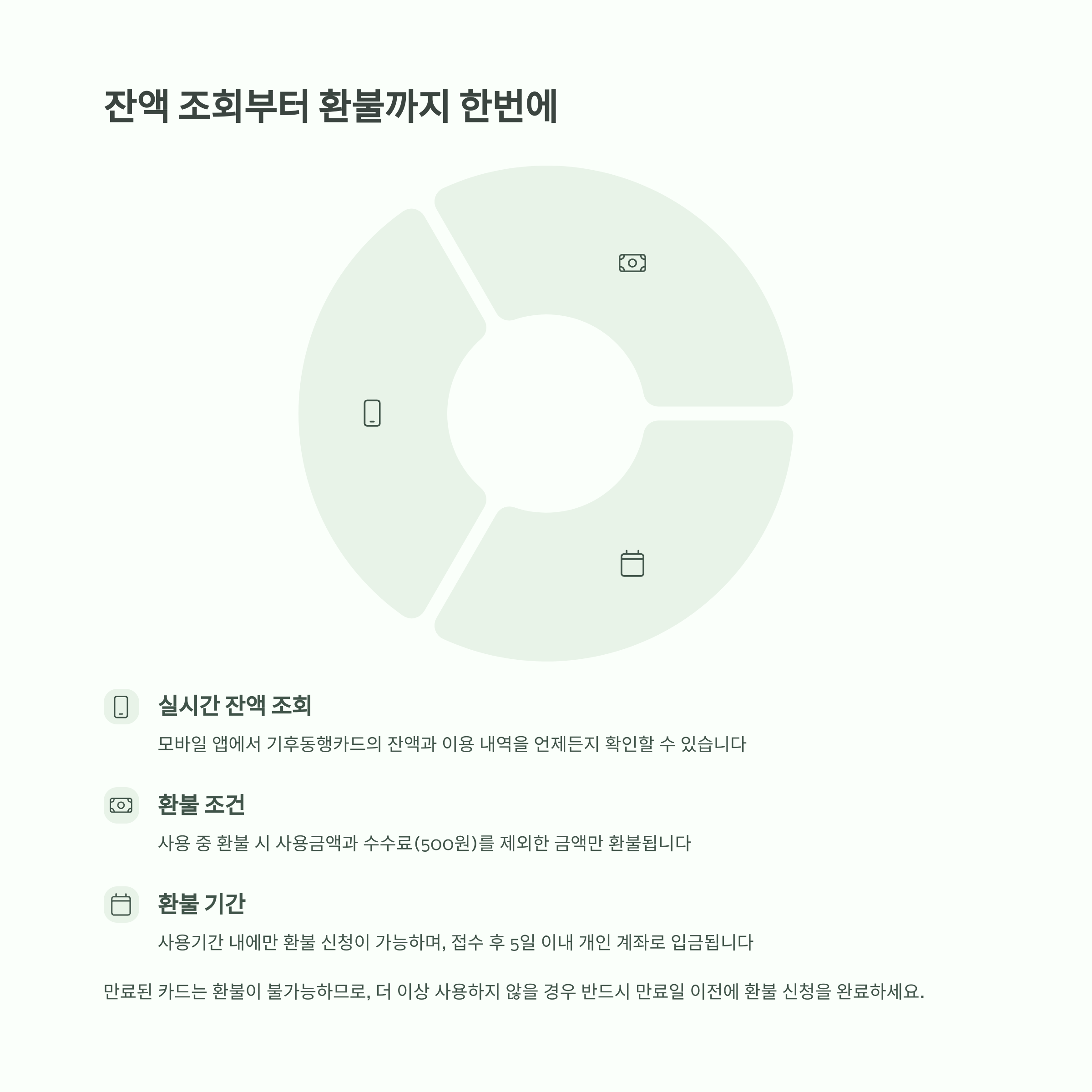 모바일 앱에서는 기후동행카드의 실시간 잔액 확인과 이용 내역 조회가