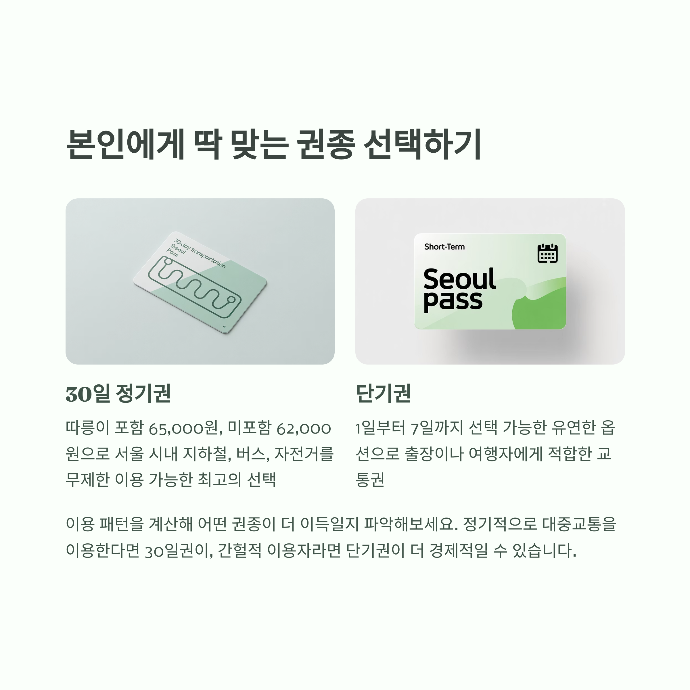 자신의 이용 패턴을 계산해 어떤 권종이 더 이득일지 파악해보세요.