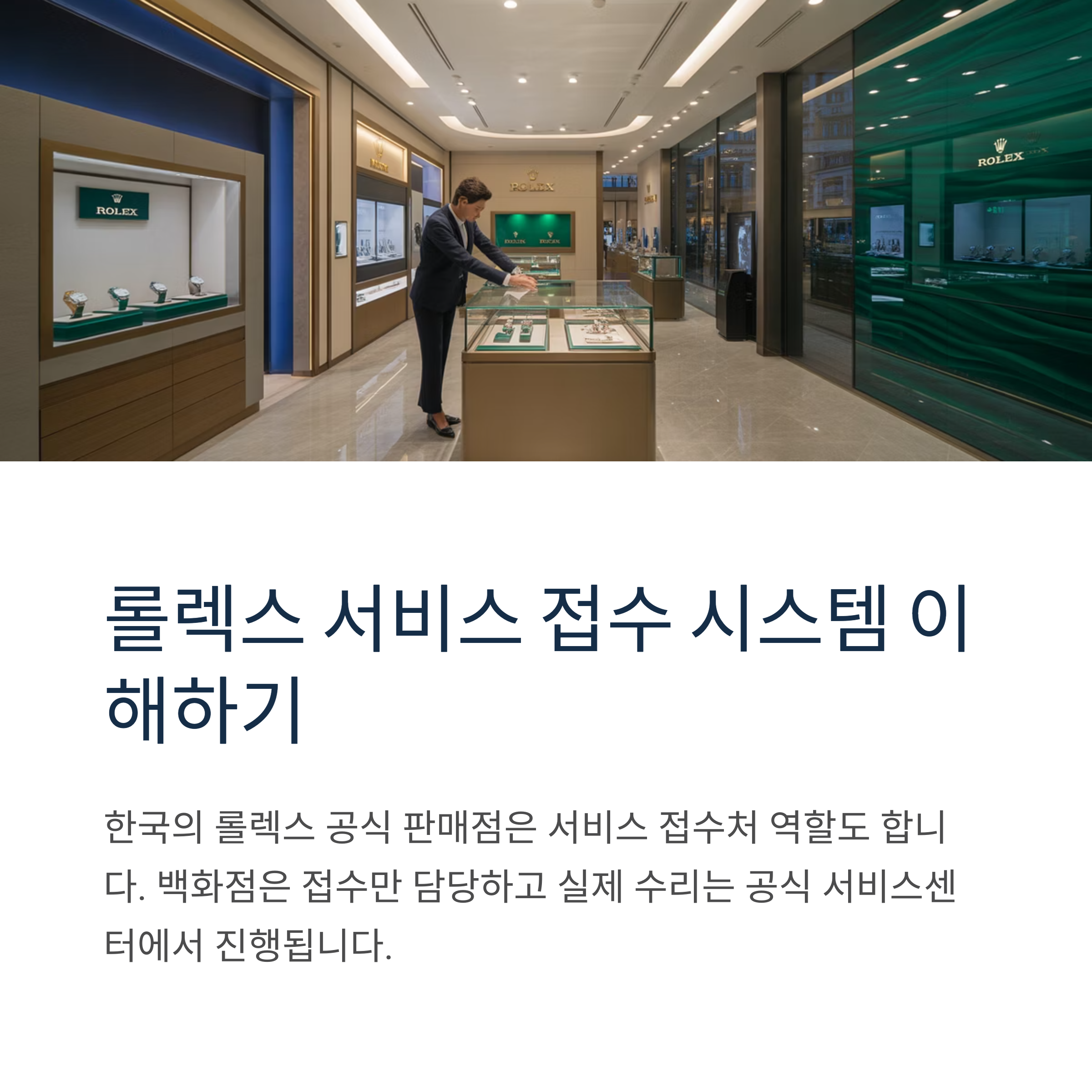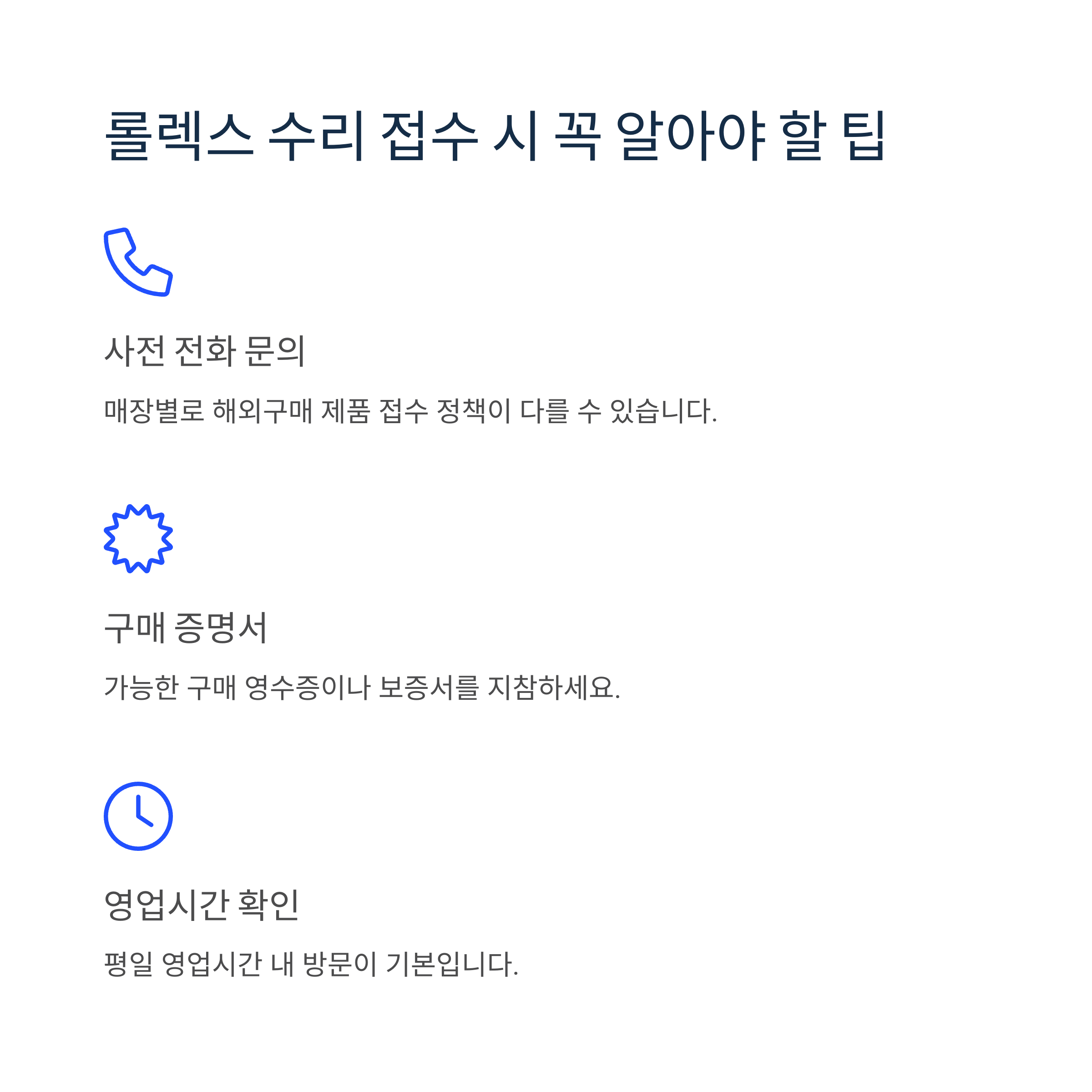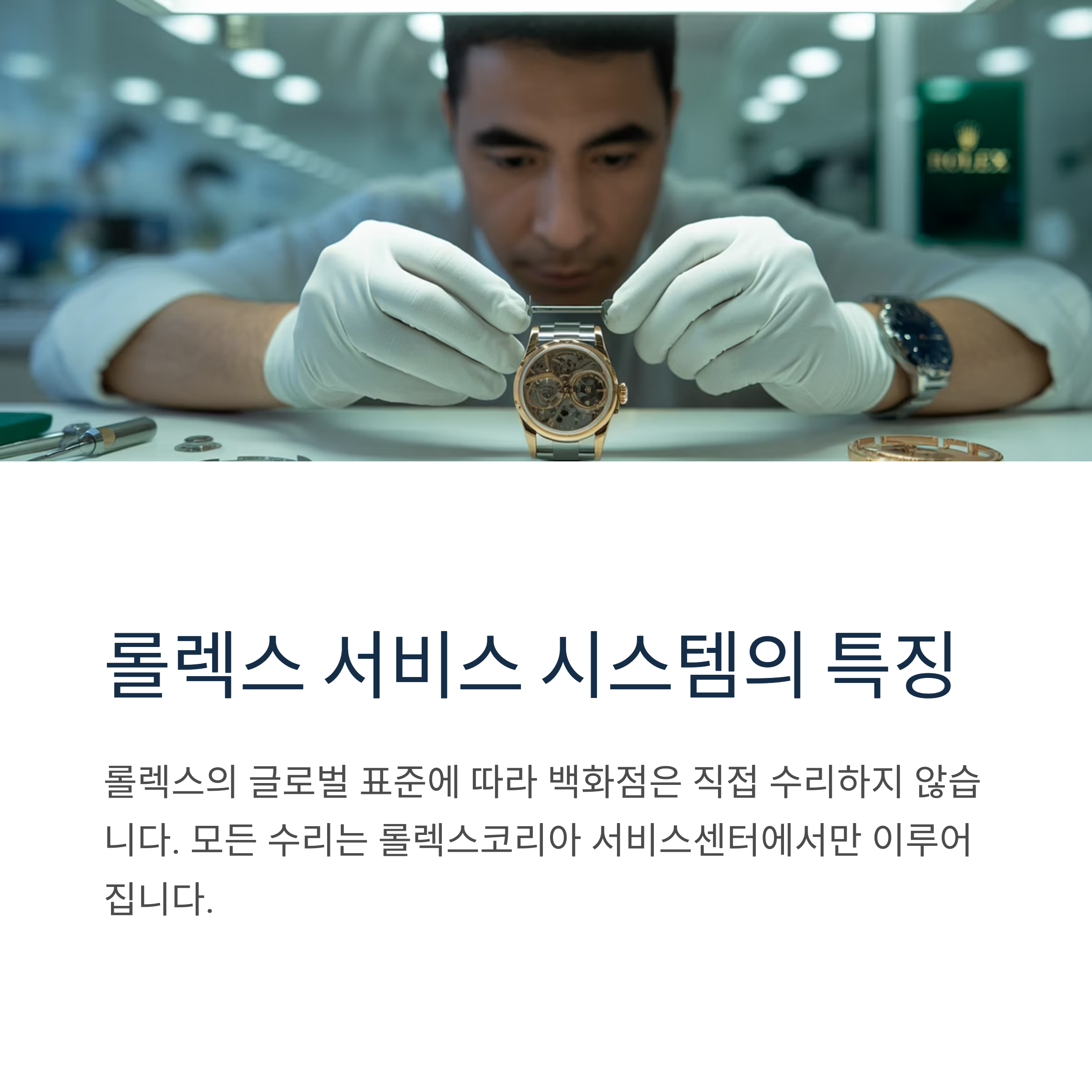 이는 롤렉스의 글로벌 표준 절차로, 모든 수리는 롤렉스코리아 서비스센터에서 진행됩니다.