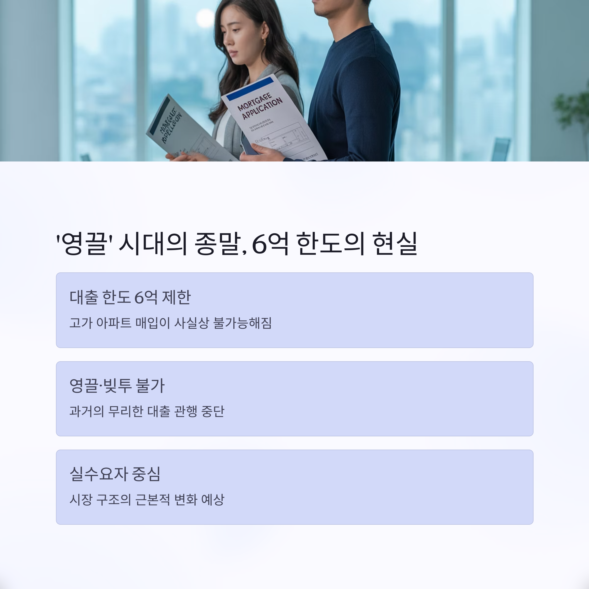 정부가 주담대 한도를 6억 원으로 제한하면서 고가 아파트 시장의 진입 장벽이 급격히 높아졌습니다. 이전처럼 '영끌'(영혼까지 끌어모은 대출)이나 '빚투'는 사실상 불가능해졌고, 실수요자 중심 시장으로 전환될 가능성이 높아졌습니다.